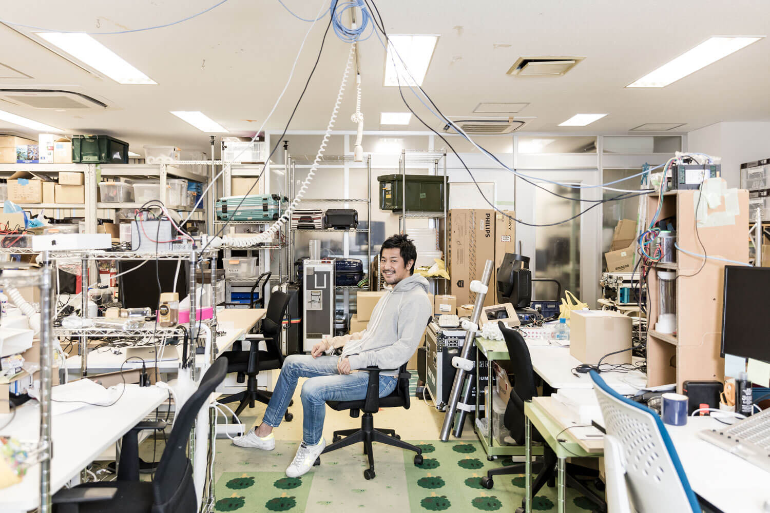 Toshiyuki Inoko, founder and chief representative of teamLab. The workshop, having become quite cramped and overcrowded owing to the increase in staff and equipment, has been relocated to new office. ©Seiichi Saito