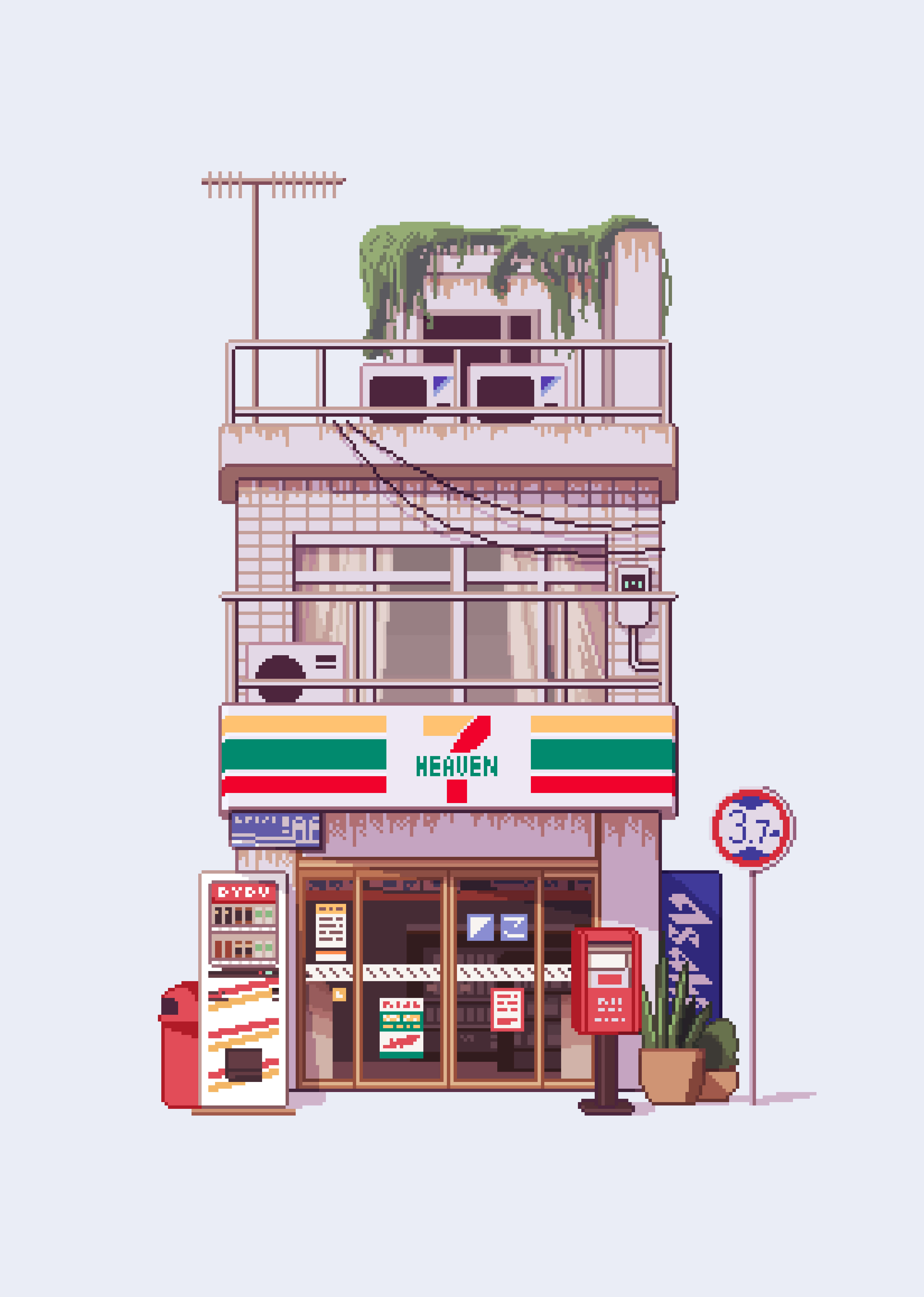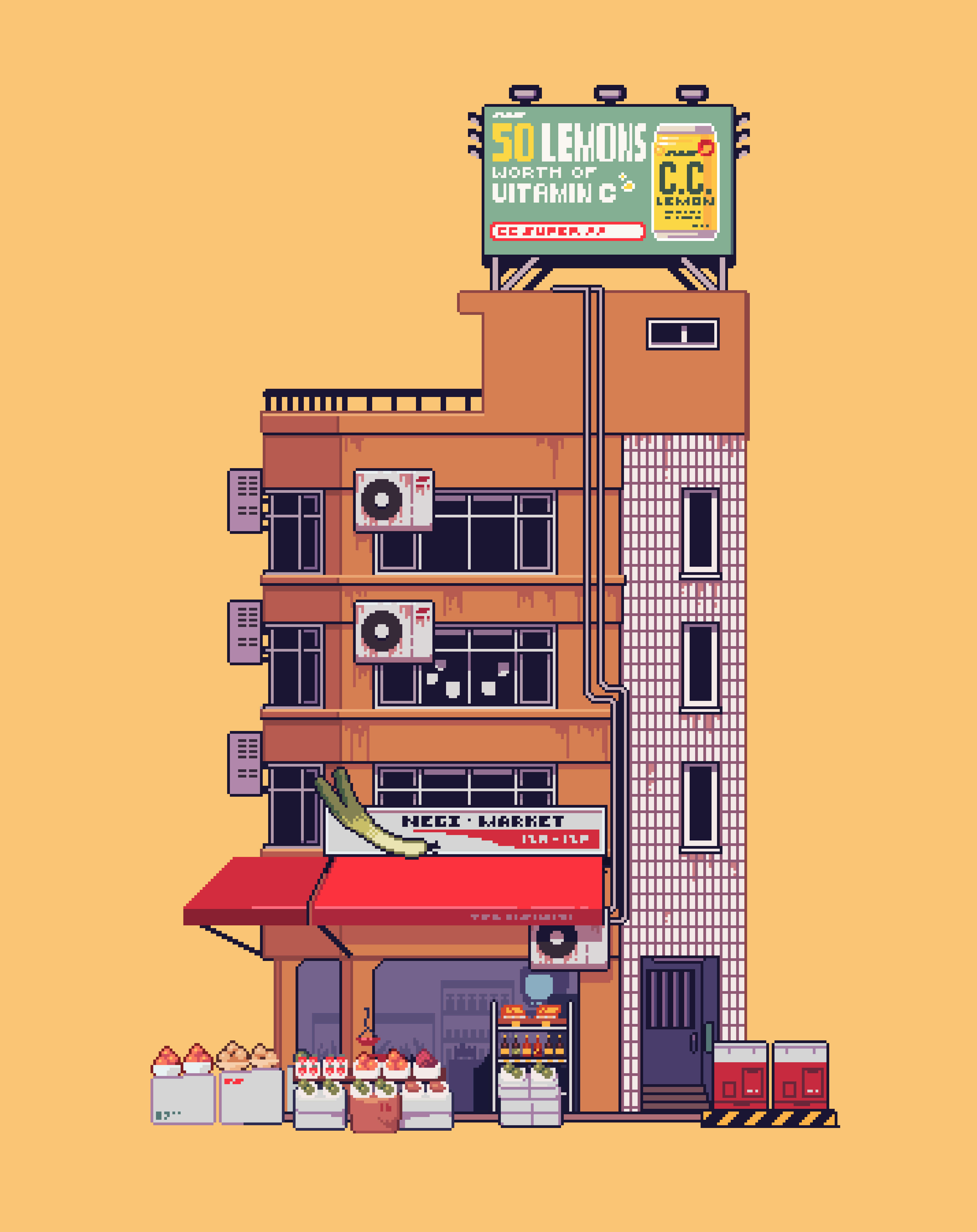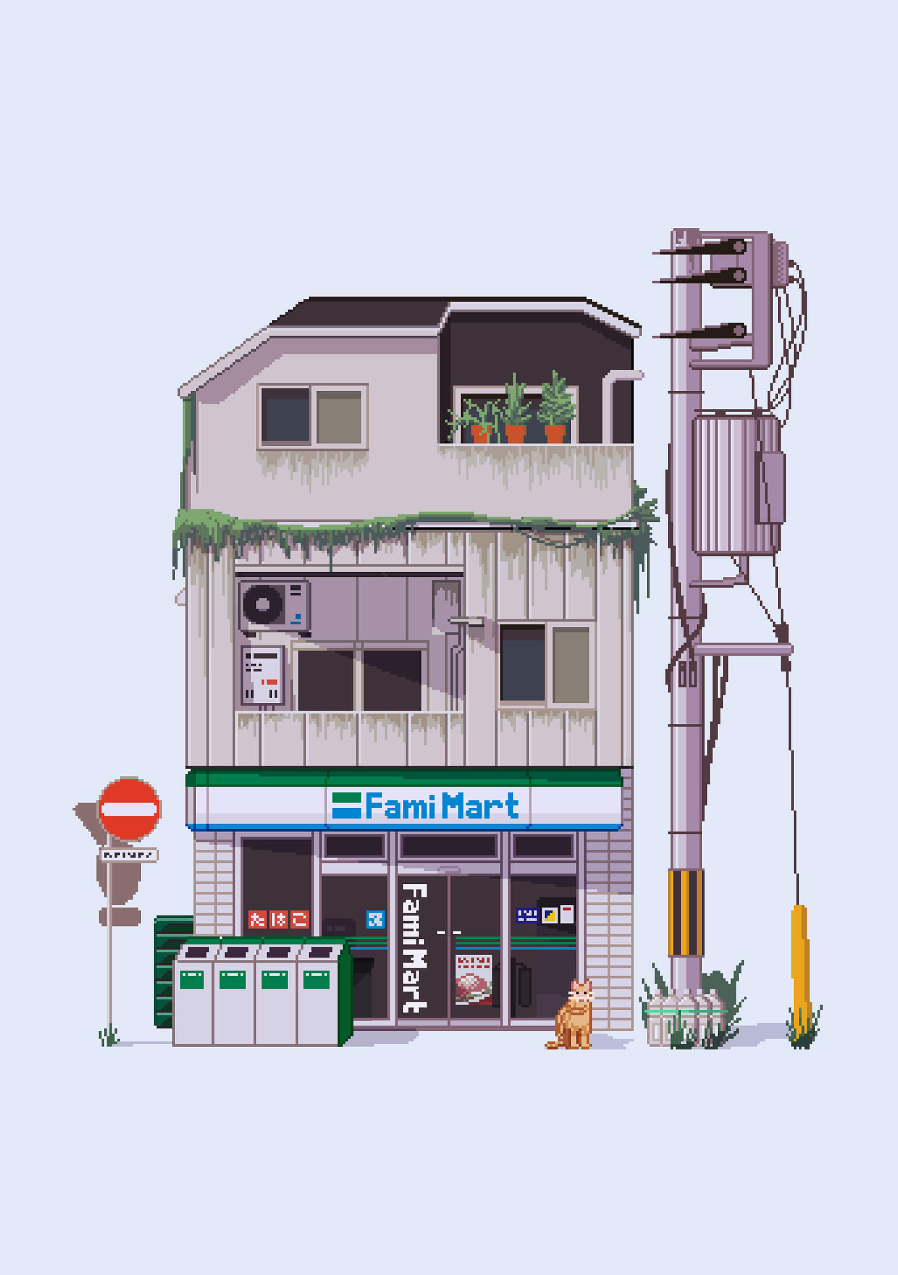 In the series 'Environments', illustrator Nelson Wu recreates Japan's 24-hour supermarkets entirely in pixels.