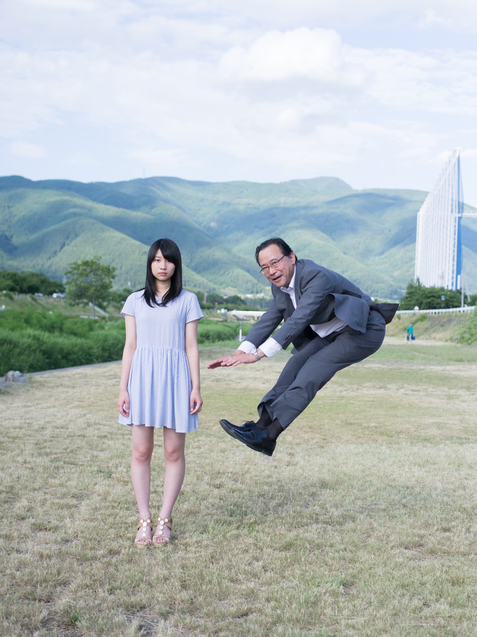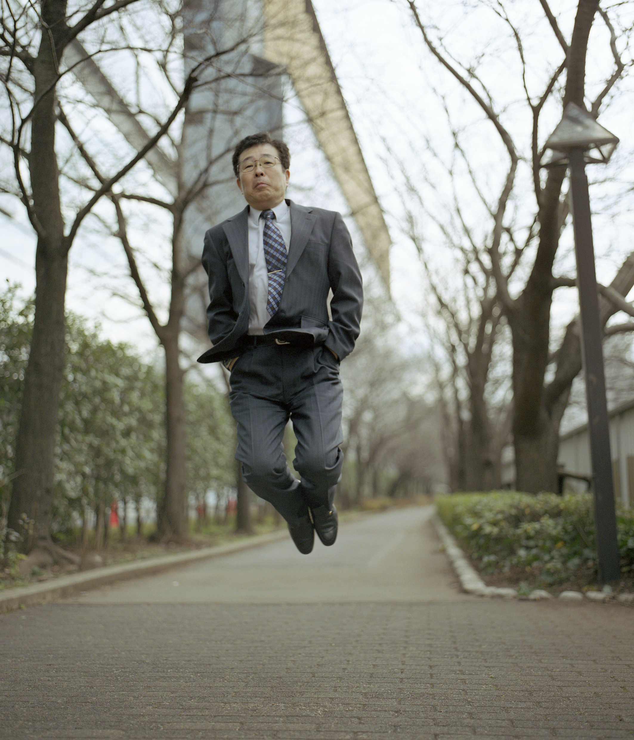 The title Solaryman combines the words sora (sky) and salaryman. This is because, to move beyond the stereotypes and step outside of the framework, businessmen are presented here in mid-air, releasing their energy by leaving conventions behind, with a childlike attitude. The photographer’s father, who was a businessman himself, is no longer alive. This project is therefore also a kind of homage. As Yuki Aoyama explains in the text accompanying the photographs: ‘Having no experience of my own as a businessman, I feel deeply moved and full of hope when I see these fathers, who sweat and fight to keep their company afloat, transforming into superheroes flying through the air.’