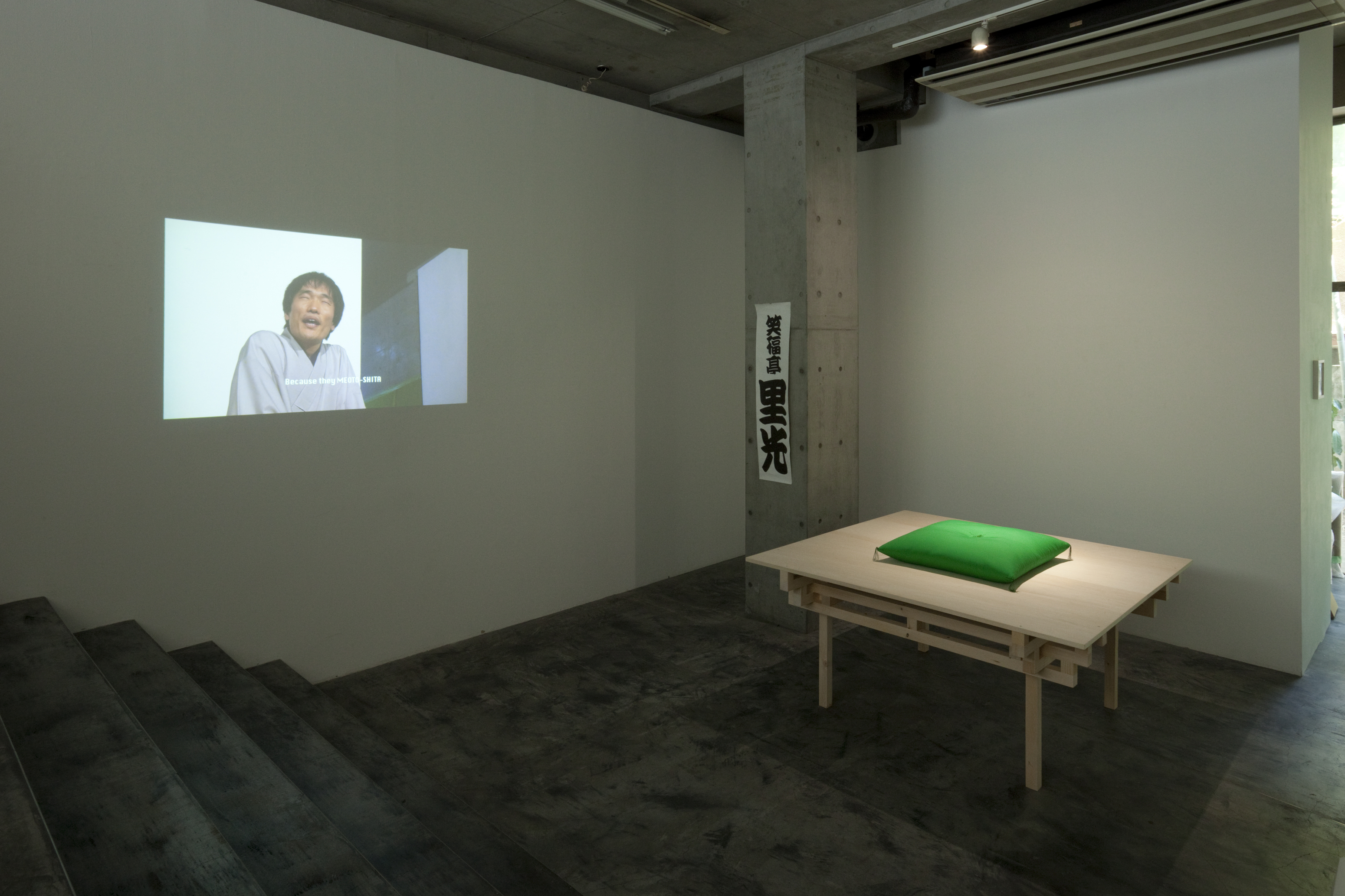 The title of the exhibition, rakugo version, refers to the Japanese art of rakugo, or storytelling. In the exhibition, rakugo performer Riko Shofukutei enacts the tale that Yuki Okumura selected. ‘Rakugo has numerous stories dealing with such fictional anatomical structures, such as Dog’s Eyes, Mt. Head, and Lantern Head,’ writes the artist. ‘In rakugo, what is in front of your eyes is merely a sole body fixed onto a zabuton cushion. This form itself may be pretty suitable to represent things that are only possible in words (stories). Rakugo can depict any kind of body structures so vividly, as long as we can take it as “possible” when referring to our everyday sensation.’