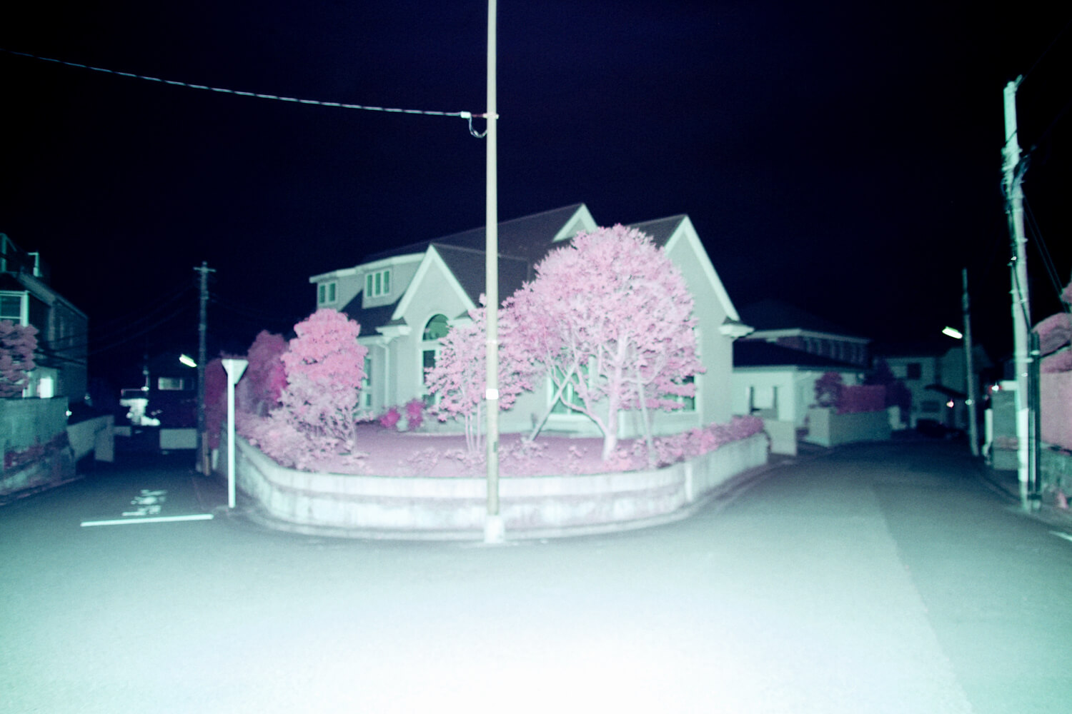 The infrared camera photographs the leaves on the trees so that they appear pink while buildings appear green. These pictures were taken in a suburban neighborhood in Tokyo. These unrealistic colours paint a picture that show us how disquieting modern times have become. Yusuke Yamatani, courtesy of Yuka Tsuruno Gallery