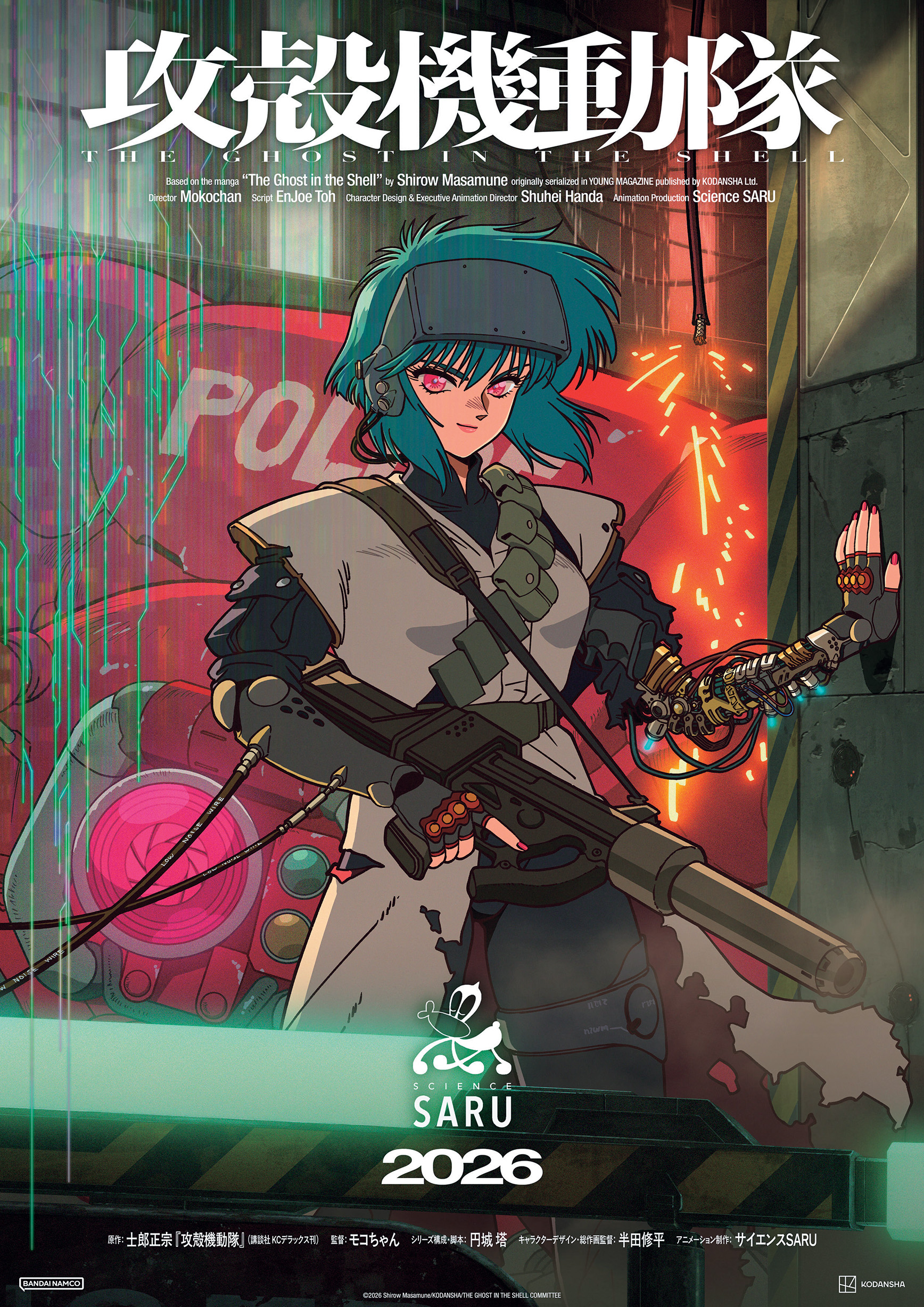 In the teaser image, a red Fuchikoma stands behind the heroine Motoko Kusanagi, whose cyborg body is brought to the fore. The visual treatment and atmosphere, paying homage to the original manga, have already drawn significant attention from fans of the series. ©︎2026 Shirow Masamune / KODANSHA / THE GHOST IN THE SHELL COMMITTEE