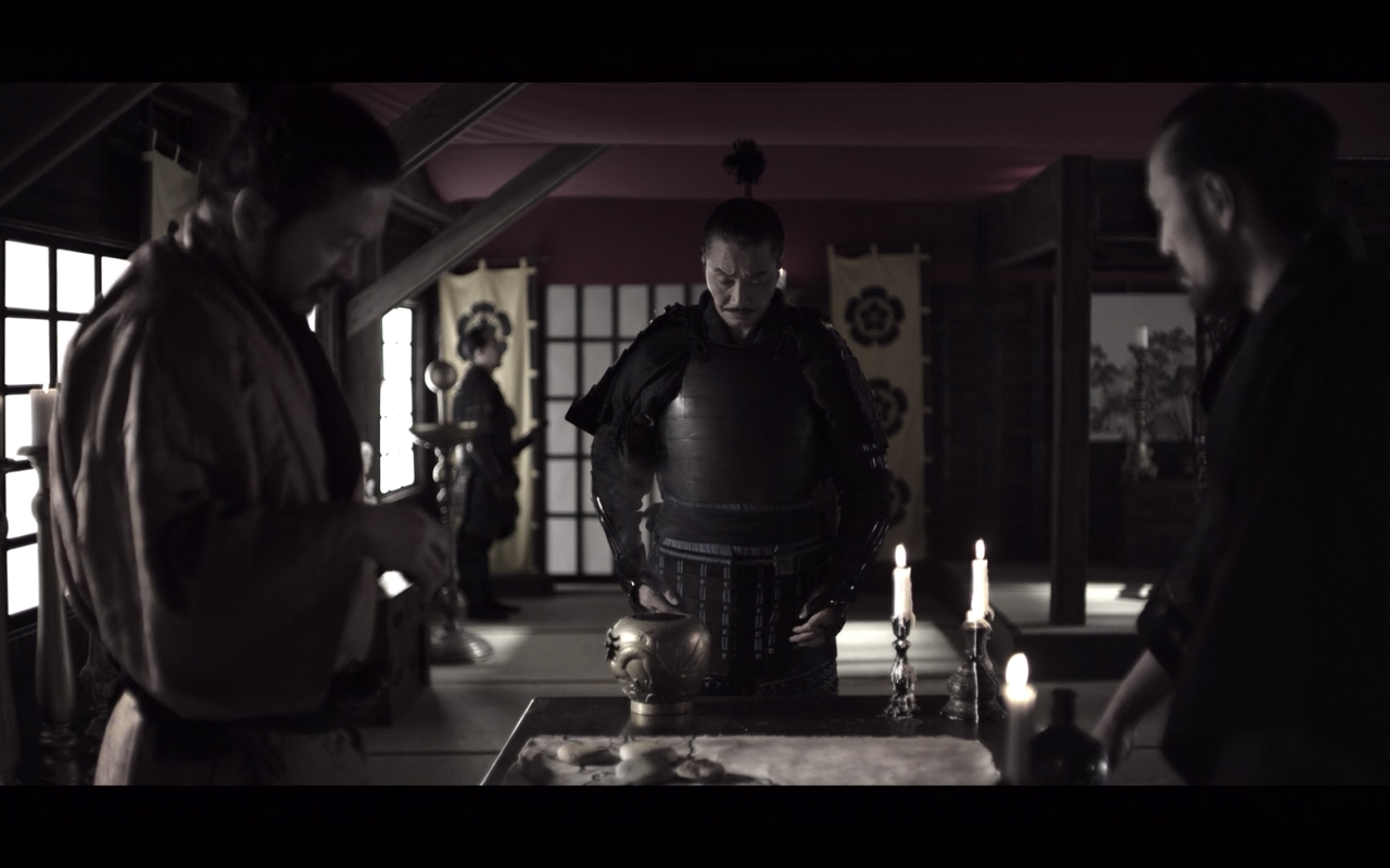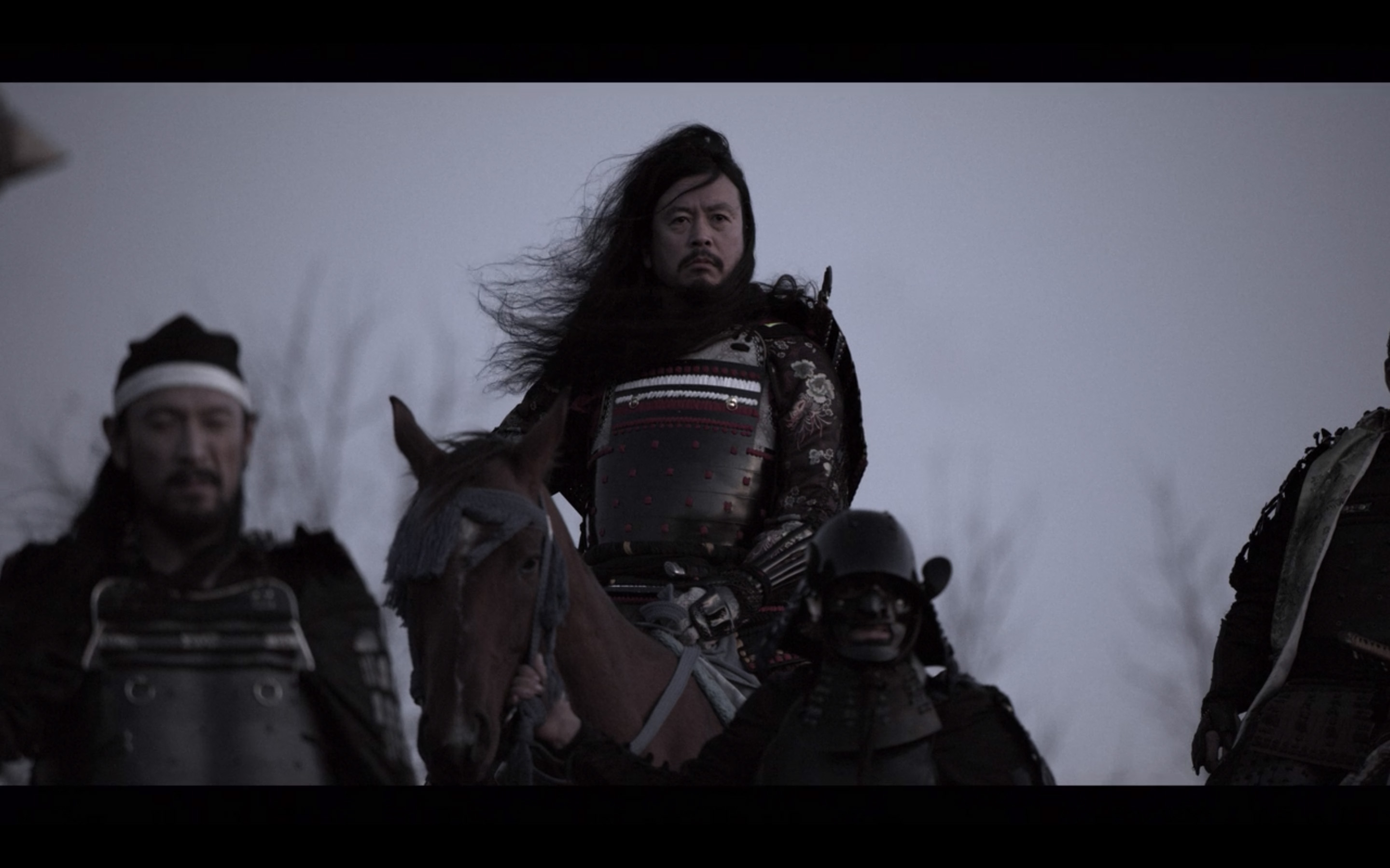 Age of Samurai is more than a war series; Simon George wanted it to play a pedagogical role too. The opening scene that recreates the battle of Okehazama, in which Oda Nobunaga and his 3000 men bring an army of 25,000 soldiers to its knees, is followed by a historical reading of the scene. Every major action is followed by the input of various historians and writers to shed light on what has just happened. To distinguish the fiction from the documentary, they appear on screen in black and white, a choice made by the director.