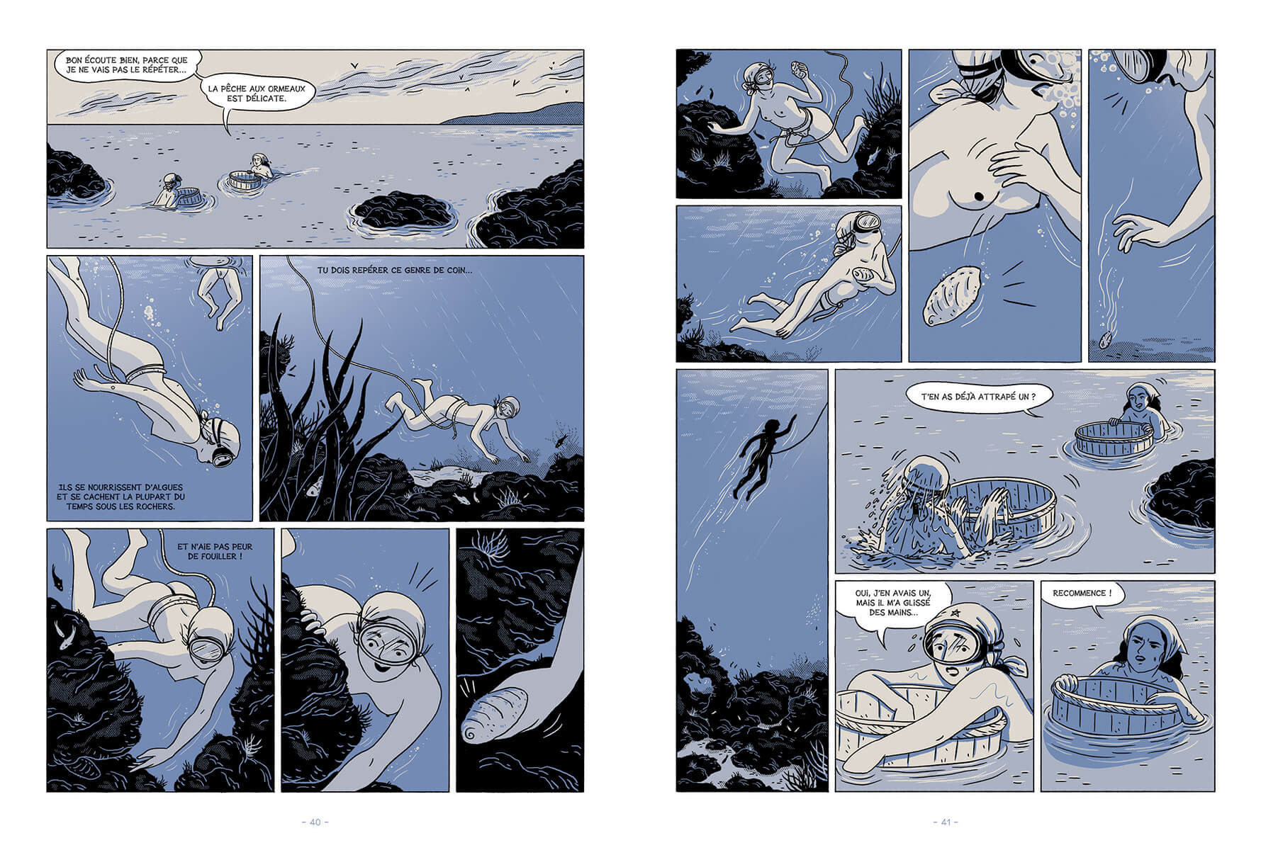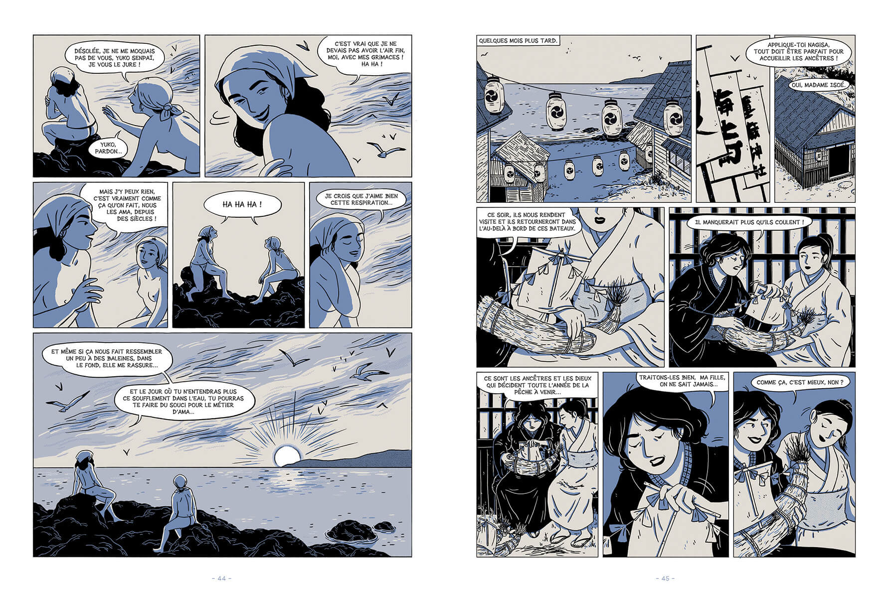 By bringing tradition and modernity face to face, the graphic novel shines a light on the combat waged by the ama against mass fishing that has a harmful impact on the environment. Through the initiation of Nagisa, who is unfamiliar with the customs and traditions of the women of the sea, the reader discovers a tough profession with ancestral techniques that are dying out.