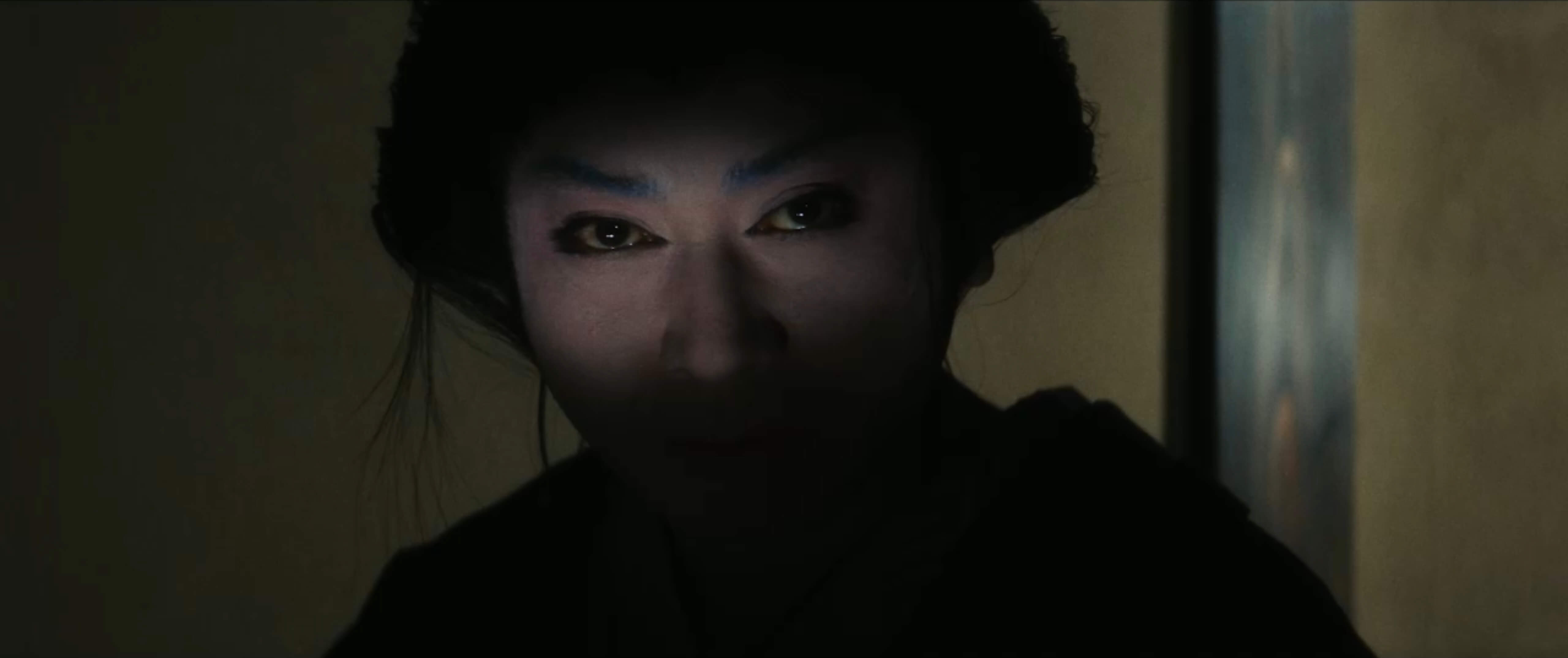 This film plays with contrasts. The first is that between light and shadow. The sun’s rays, the glow of the moon, and the halos of light from candles illuminate parts of characters’ faces or blades of swords, while the rest of the setting is plunged into relative darkness. This interaction between light and dark is carried by colours that, when they are revealed, are particularly deep. Contrasts are also present in the soundtrack, which alternates between traditional Japanese music and jazz. Lastly, Kon Ichikawa muddies the waters in his adaptation, sometimes giving the impression, through his clever use of settings, lighting, and camera movements, that the viewer is watching a kabuki performance.