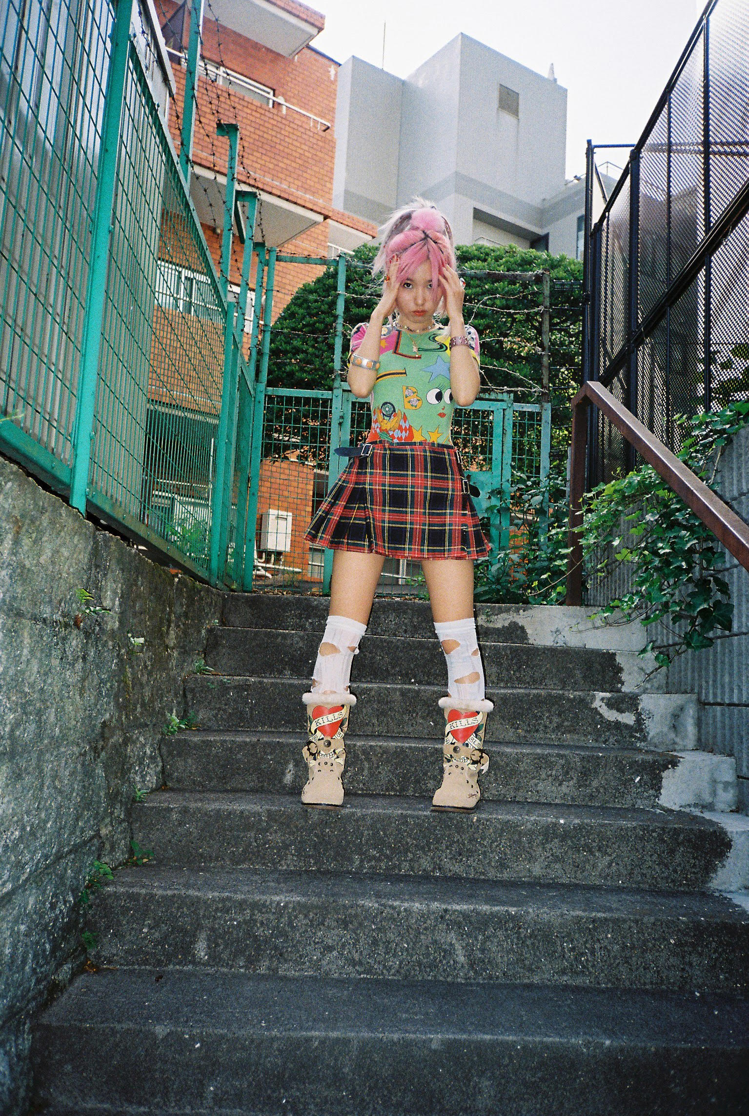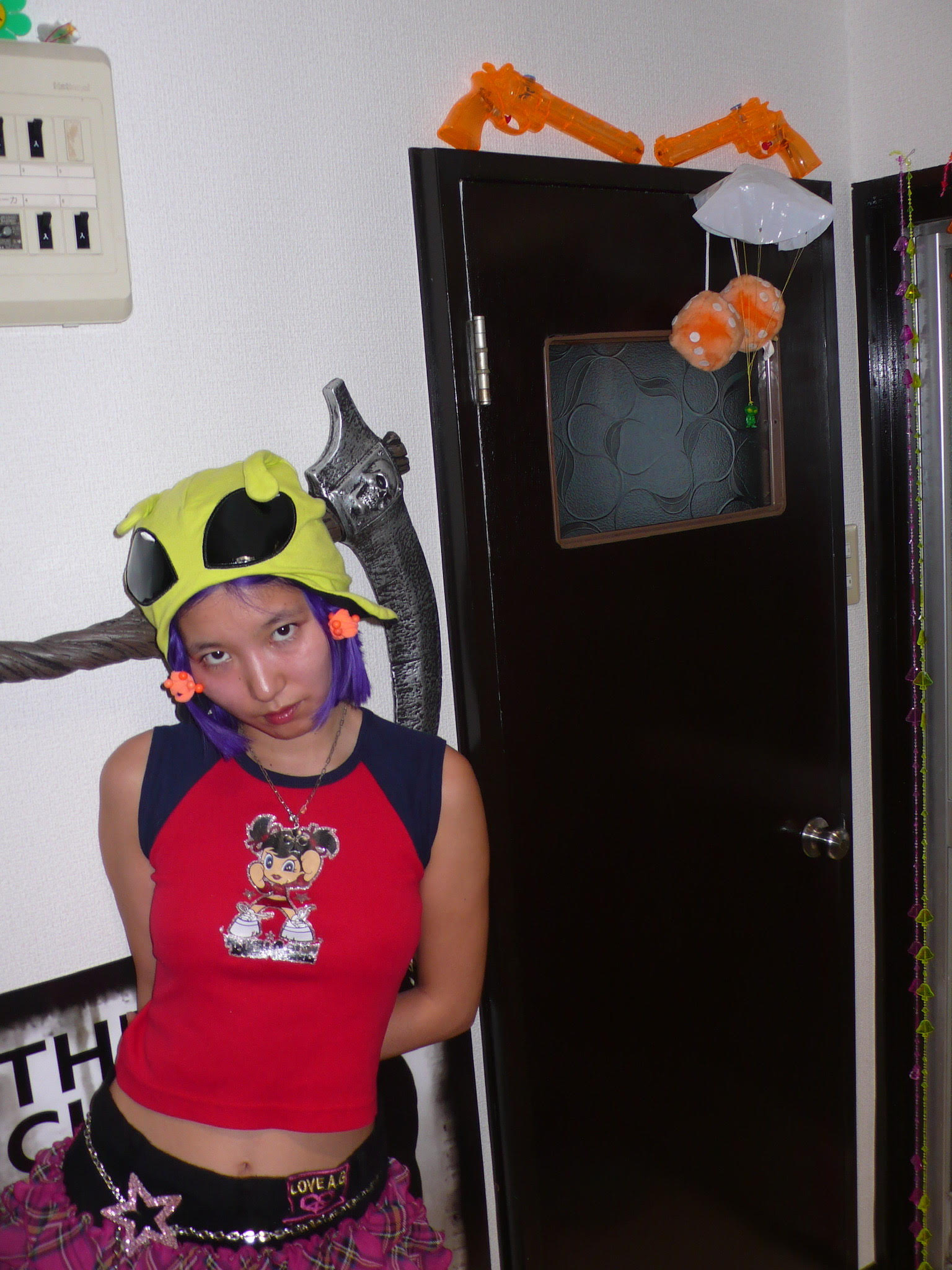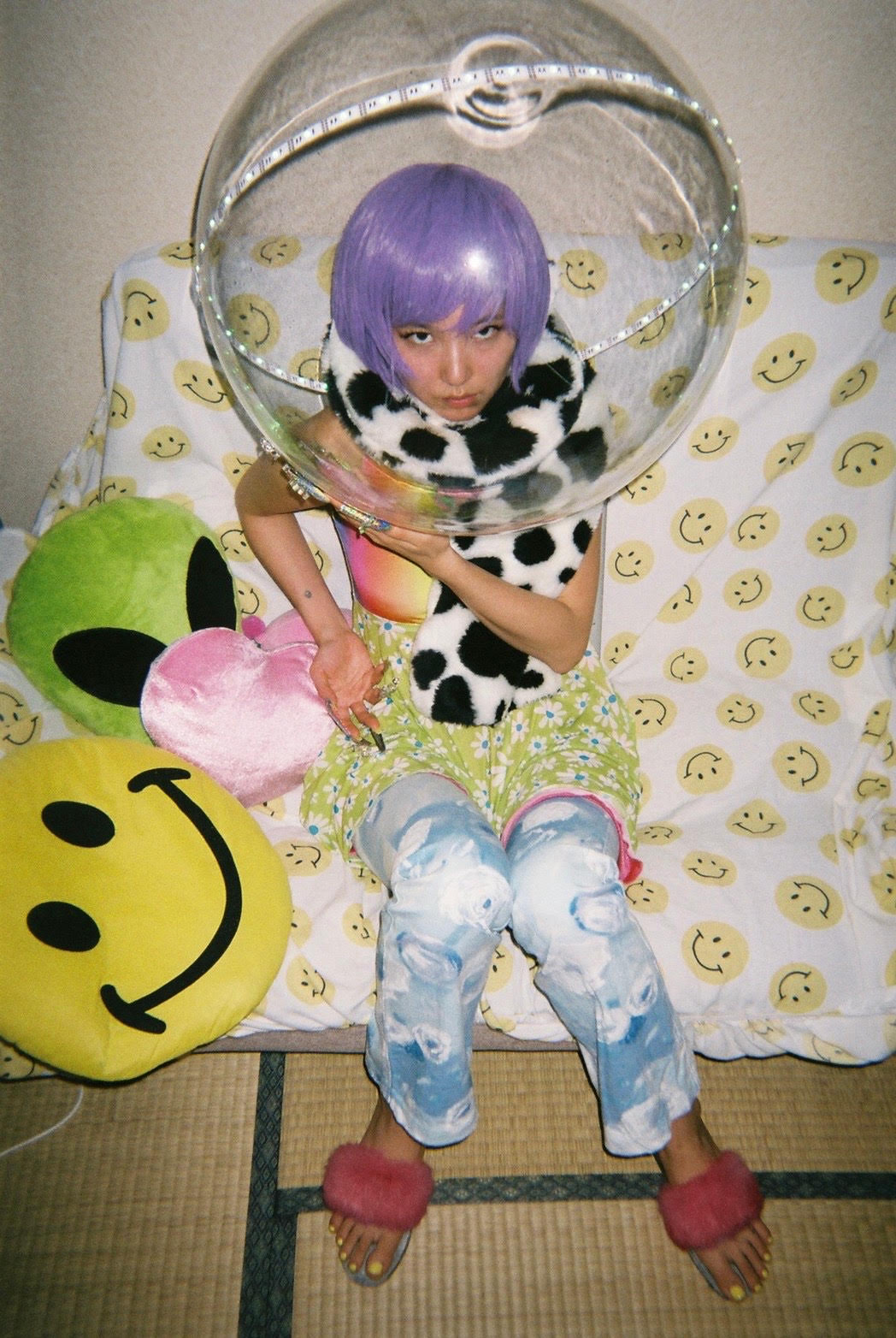 Experimental producer Aya Yanase, or Aya Gloomy, pushes the shimmering boundaries of J-Pop into uncharted territory. An important name in the independent music scene tied to Big Love Records, her effortless lo-fi production style mutates pop’s bubbly sheen with dark science-fiction-like overtones. Influences from previous decades—Japanese musicians such as Jun Togawa, Chiemi Manabe, Miki Nakatani, and Dip in the Pool—are distilled with the melancholy of contemporary R&B, inviting comparisons to American producers like Princess Nokia or Abra at the same time. Meanwhile, as a fashion icon and vintage shop owner, her off-kilter pop music could be visually identified with her colourful electric hair and clothing representing Harajuku with a radioactive twist.