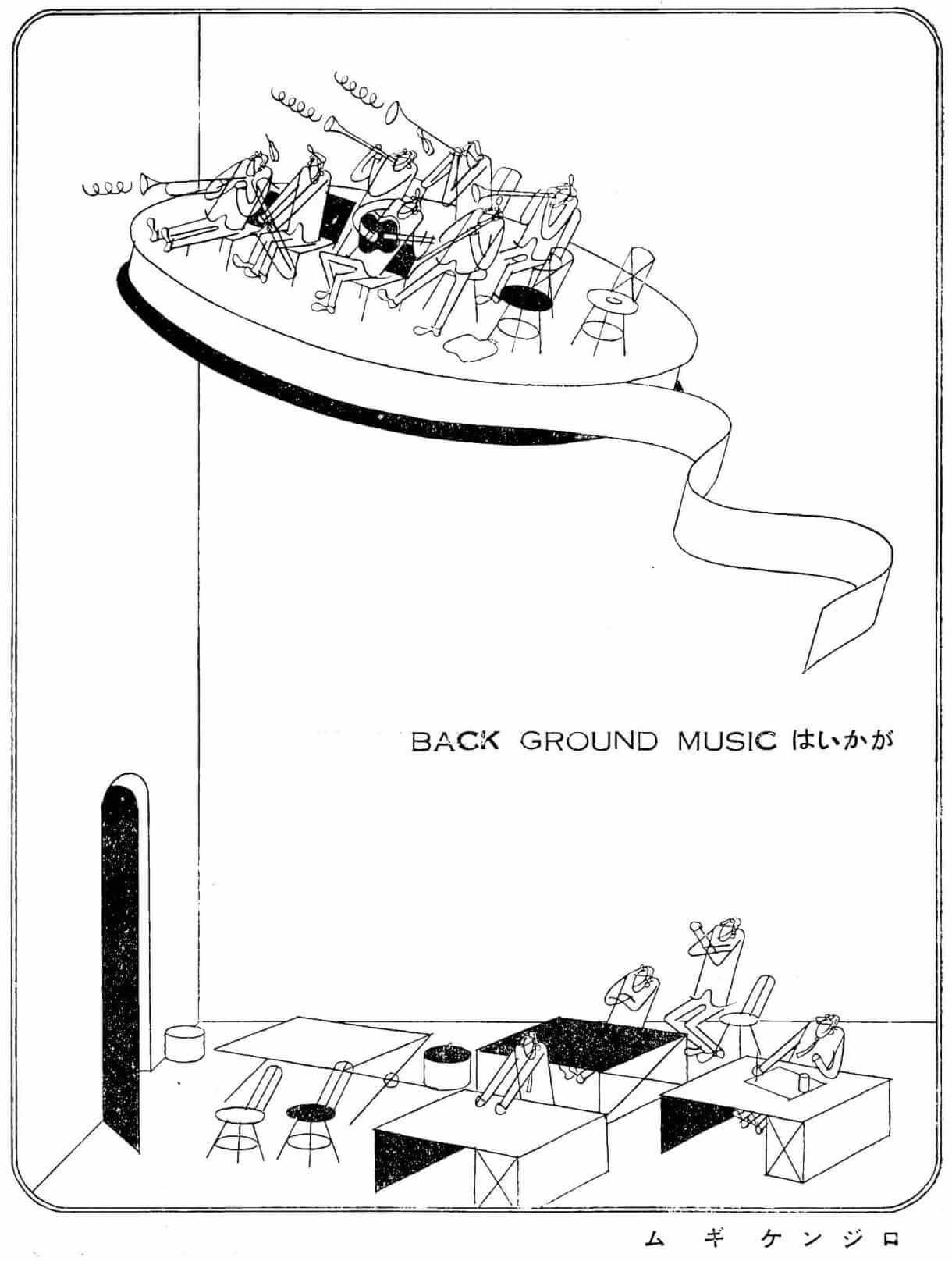 ‘Would you like some background music?’ An image from ‘BGM Digest’ (1962). Courtesy of Toyo Media Links.