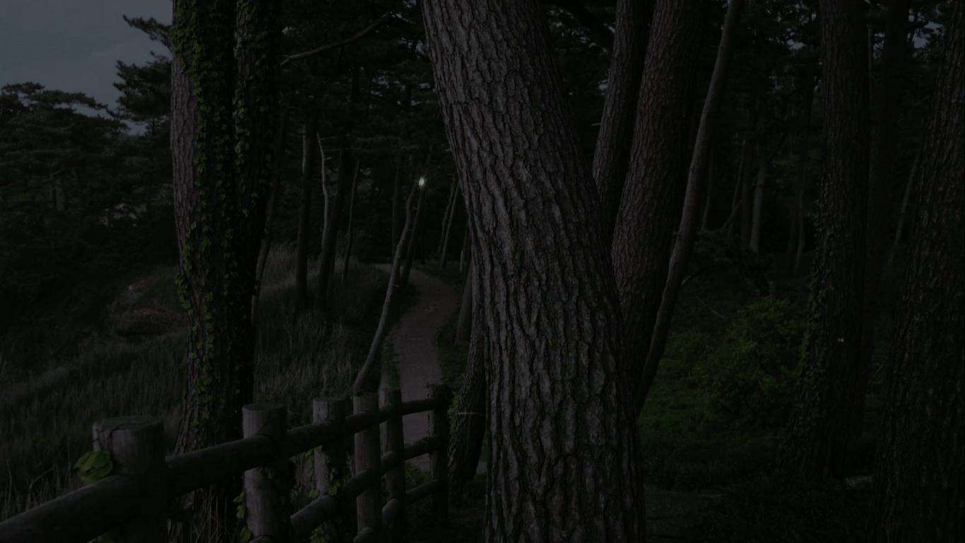 Blaise Perrin’s film follows Yukio Shige across the plunging vistas of Tojinbo, from the moment he begins his circuit or ronde in the bustling tourist town, to the moment when, as the light fades, the tourists begin to disperse, eventually disappearing altogether as darkness falls on the high treetops and the deep sea below. ‘This progression of light and change of décor were important’, explains the filmmaker. ‘I wanted the viewer to be able to feel the two different atmospheres.’ Shot over the course of Golden Week, the film encompasses almost the entire trajectory of Yukio Shige’s path. ‘We only gave him one direction’, says Blaise Perrin, ‘do as you would on any other day.’