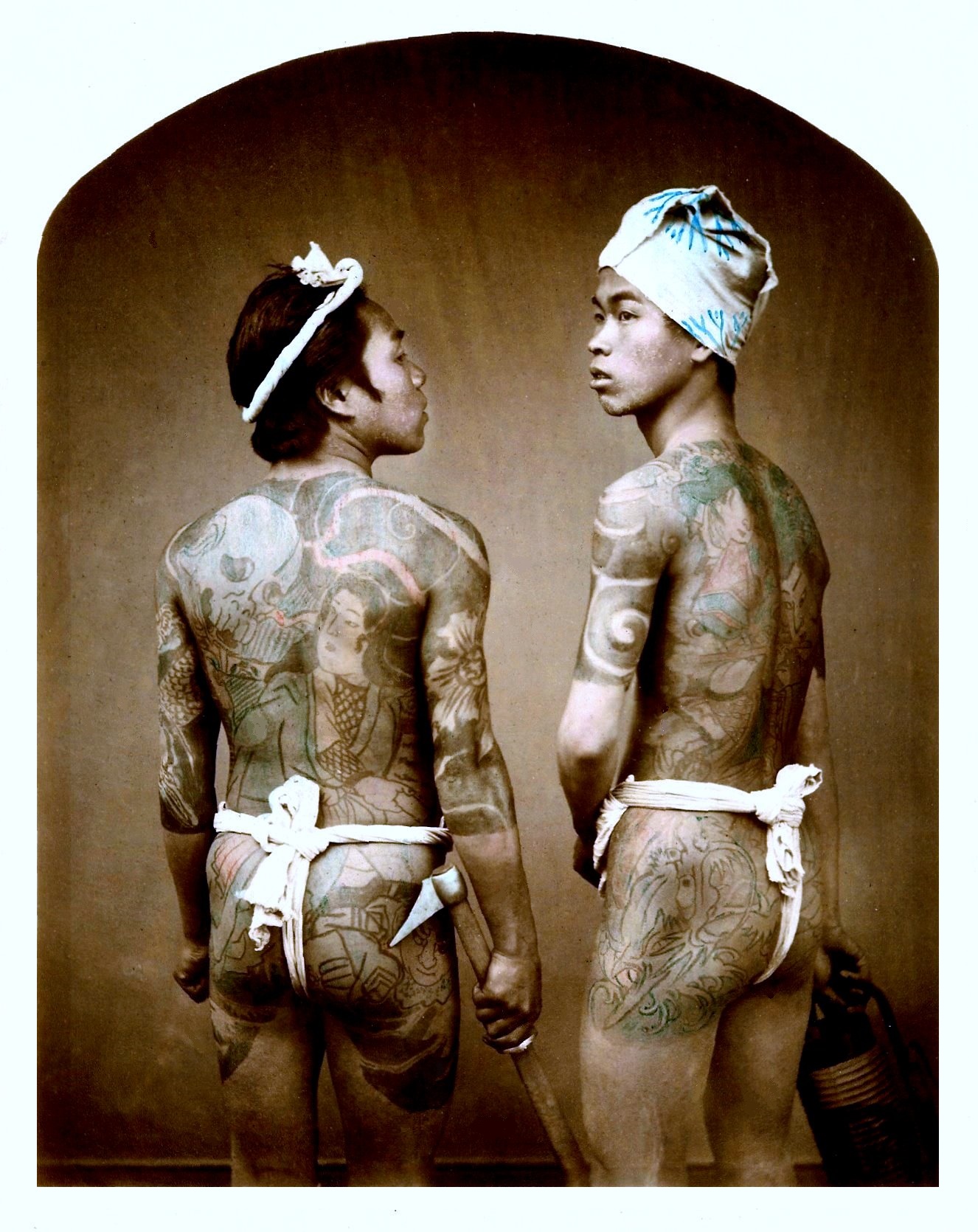 The tattooed men of old Japan - 入れ墨 Early 1870s photograph by Baron von Stillfried.