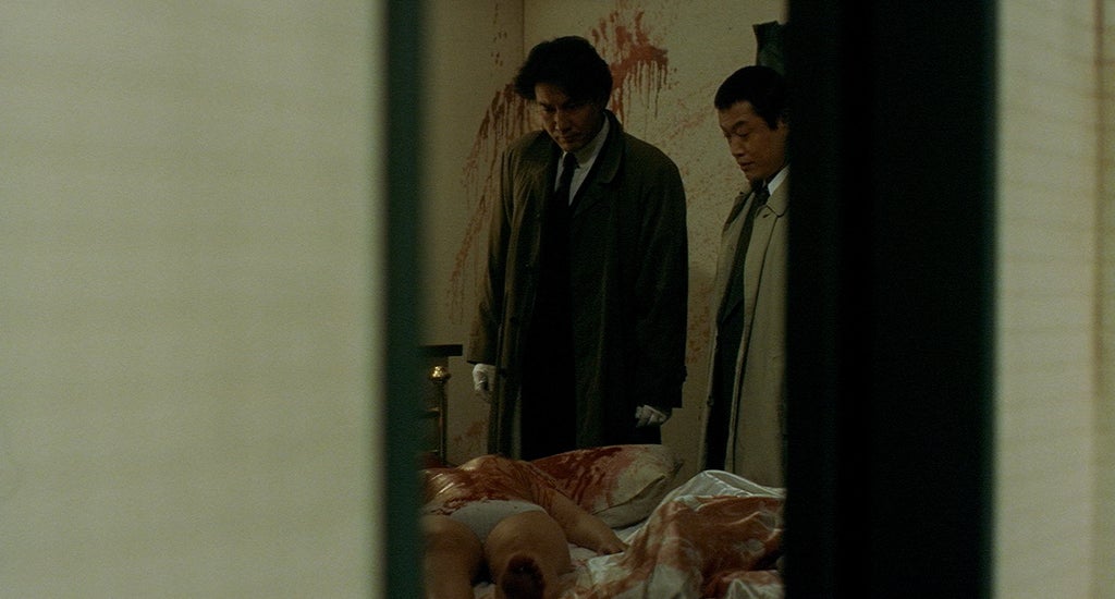 An overworked police detective wearing a khaki mac and a victim of hallucinations. An unnamed man with hypnotic powers who roams around Tokyo, stony-faced, intoxicated and empty. Multiple victims, but all marked with a cross carved into their neck. From the opening minutes of Cure by Kiyoshi Kurosawa —no relation to Akira, as he was constantly asked at the start of his career— the conventions of thrillers are established. The introduction conforms to the norms of the genre, which the filmmaker will soon shatter as the narrative progresses.