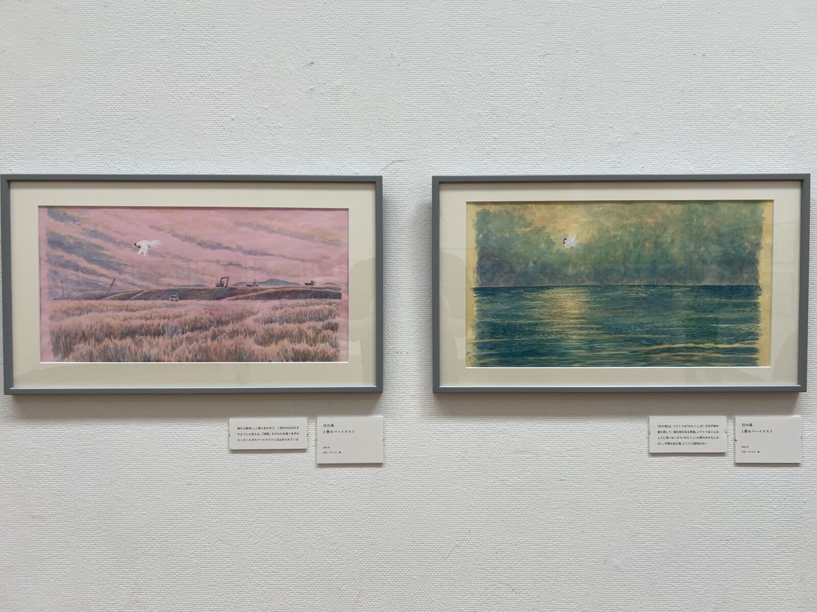 From the exhibition ‘Fumiyo Kōno: 30 Years as a Mangaka’, ‘Hi no Tori’. Right: cover illustration, vol. 1, 2014. Left: cover illustration, vol. 2, 2016.