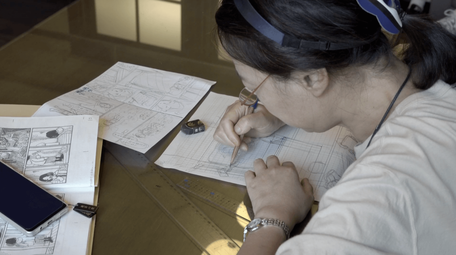 ‘I’ve never been comfortable with screentones… applying them takes more time, so I’d rather draw meticulously by hand, which I enjoy far more. I used to try writing scripts on a computer before drawing, but it didn’t work. Ultimately, I prefer to create storyboards with sketches, thinking as I move my hand. I cherish that feeling of the hand and brain being directly connected.’