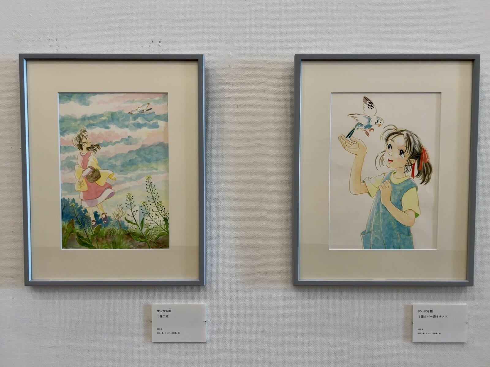 From the exhibition ‘Fumiyo Kōno: 30 Years as a Mangaka’, ‘Pippira-nōto’. Right: cover illustration, vol. 1, 2000. Left: illustration at the beginning of the work, vol. 1, 2000.