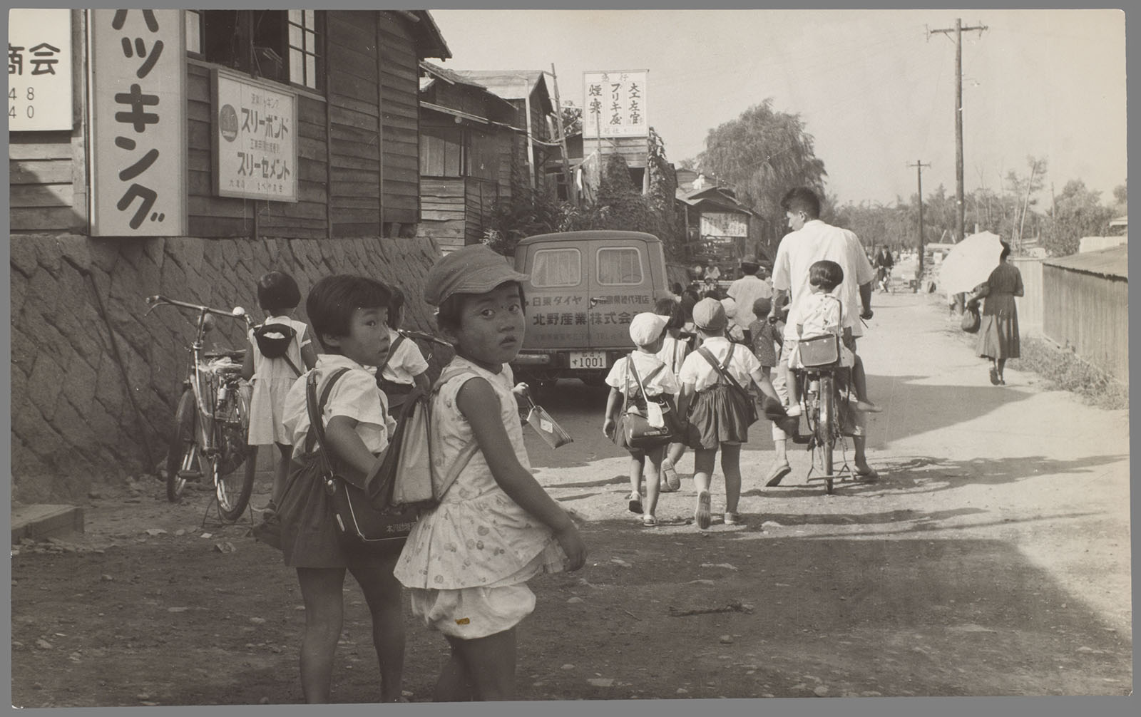 The actress, accompanied by script writer Sylvette Baudrot, bought herself a Ricohflex in Tokyo before leaving for Hiroshima. She was therefore able to capture moments of everyday life in Japan throughout her journey, notably in the peripheral districts of Hiroshima, ten years after the bombings.