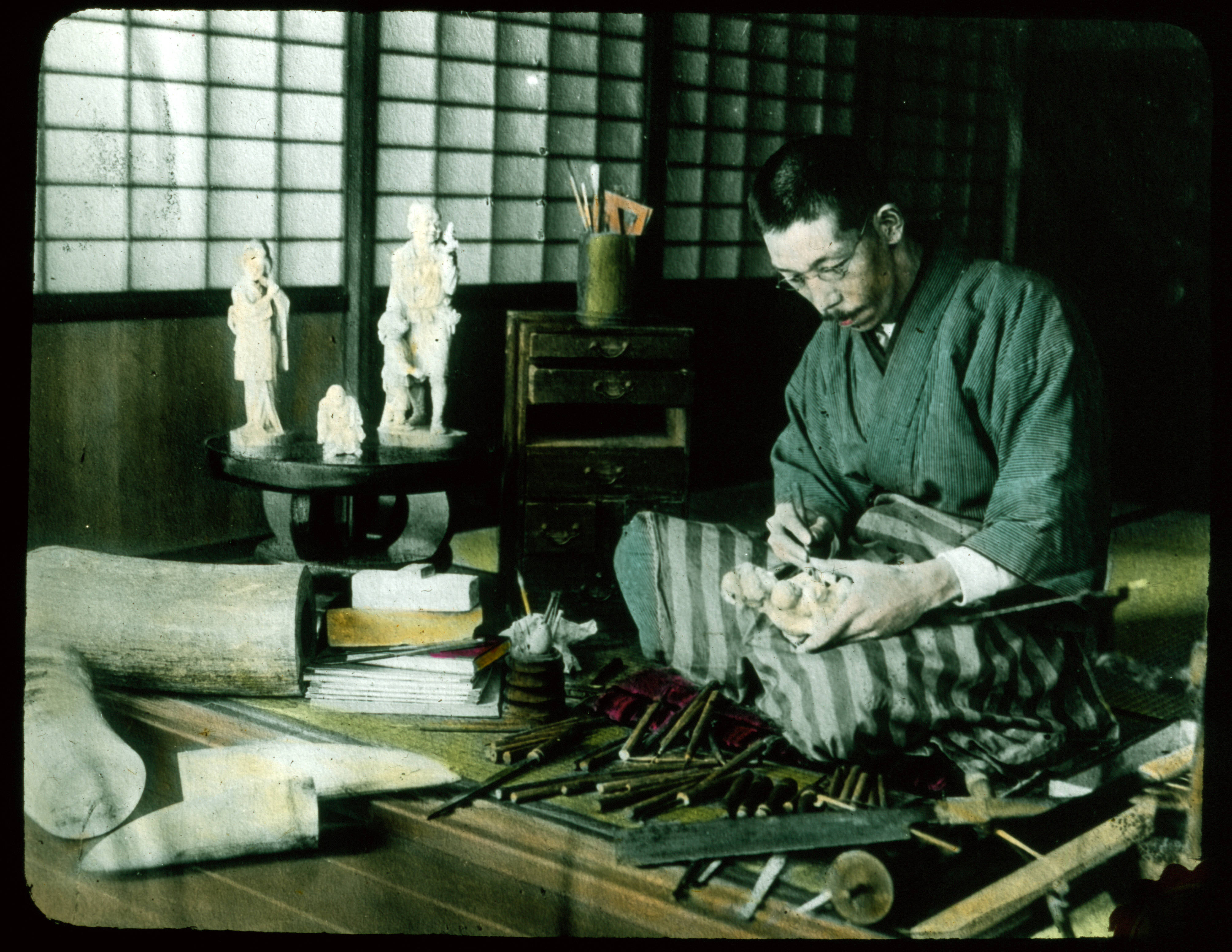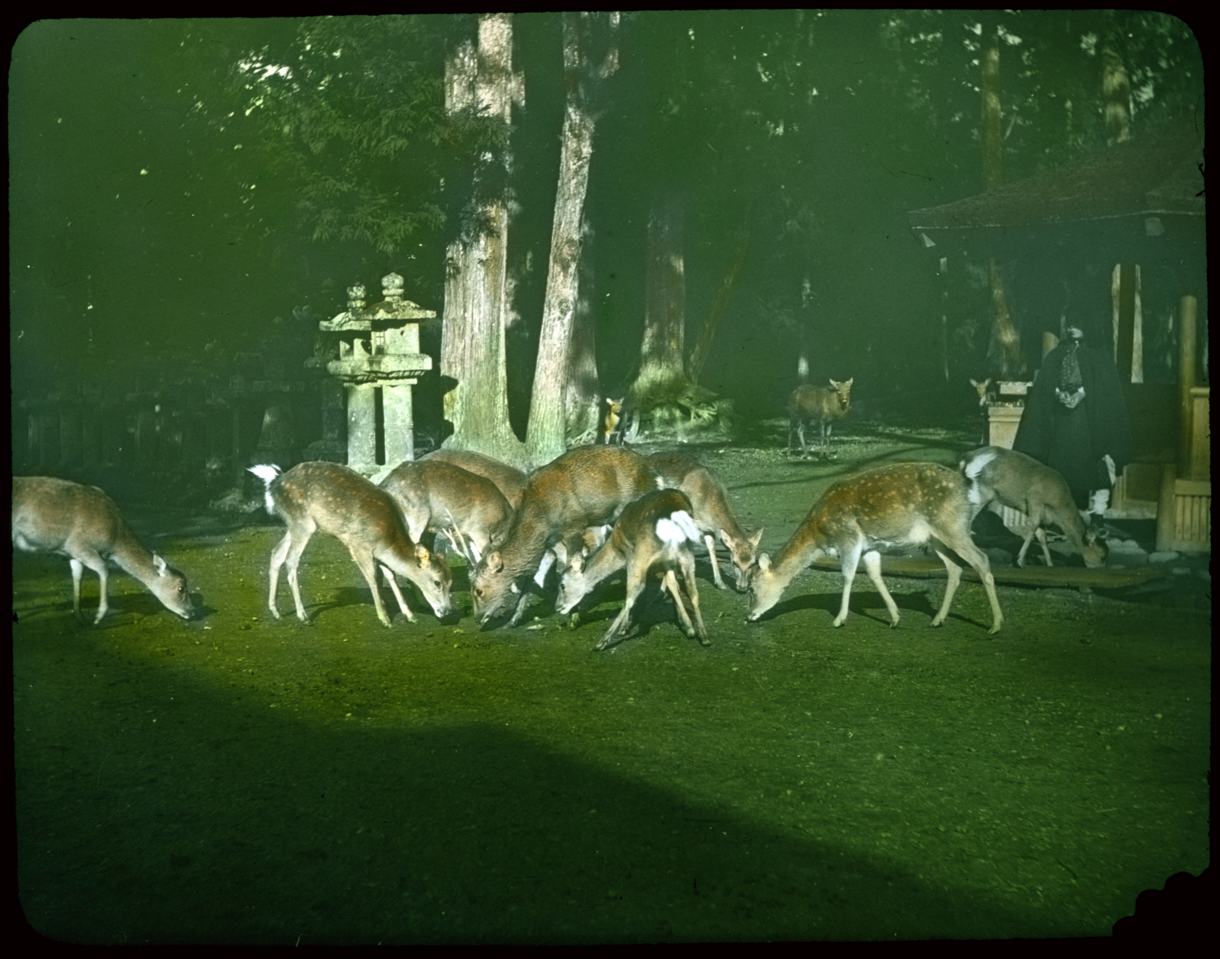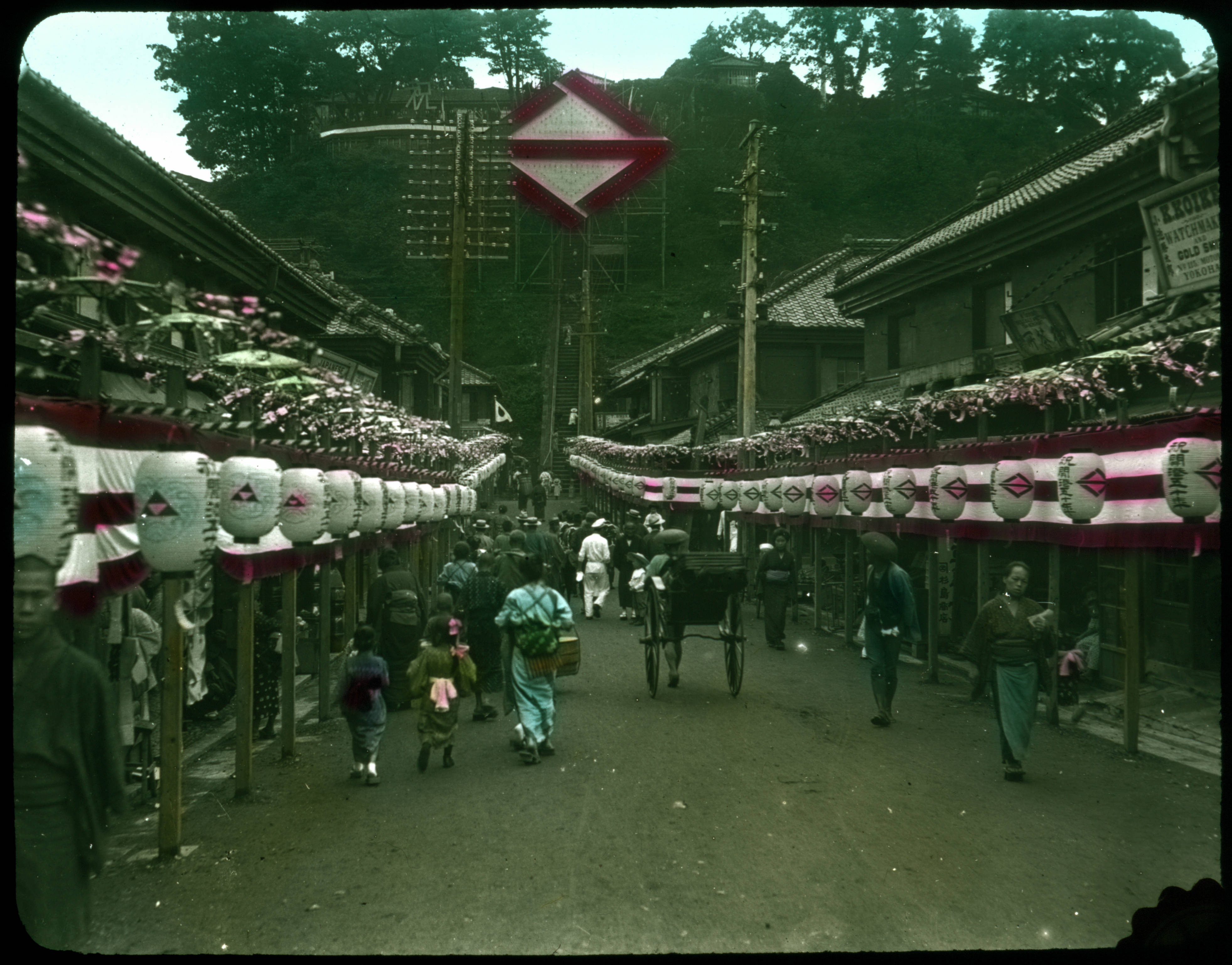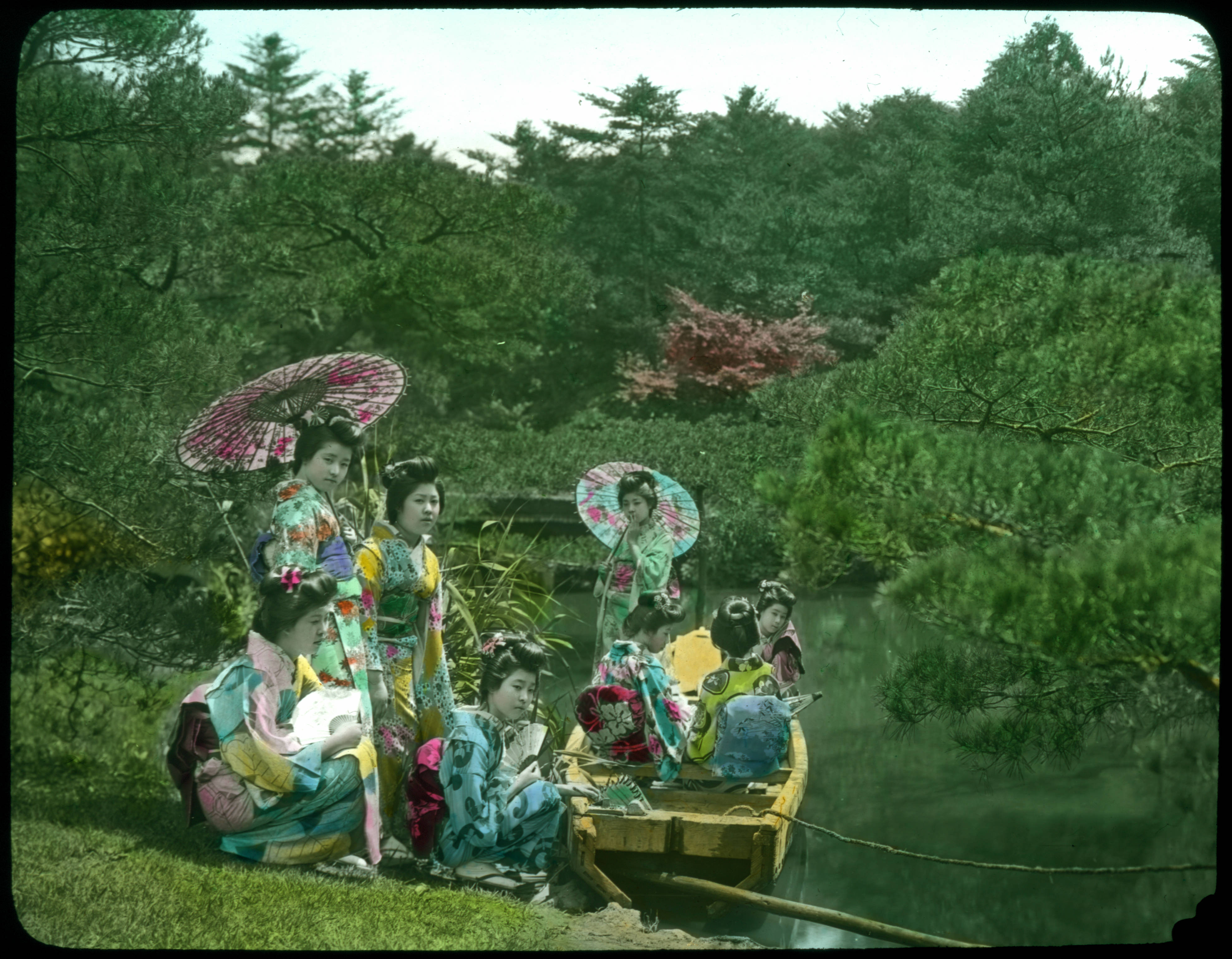 These glass plate transparencies present quaint, traditional images of Japan, such as temples, cherry blossom, and geisha dressed in kimono. There are also lesser-shown representations of what life was like in Japan during this two-century period: silk-factory work, rice cultivation, blacksmithing, and craftsmanship.