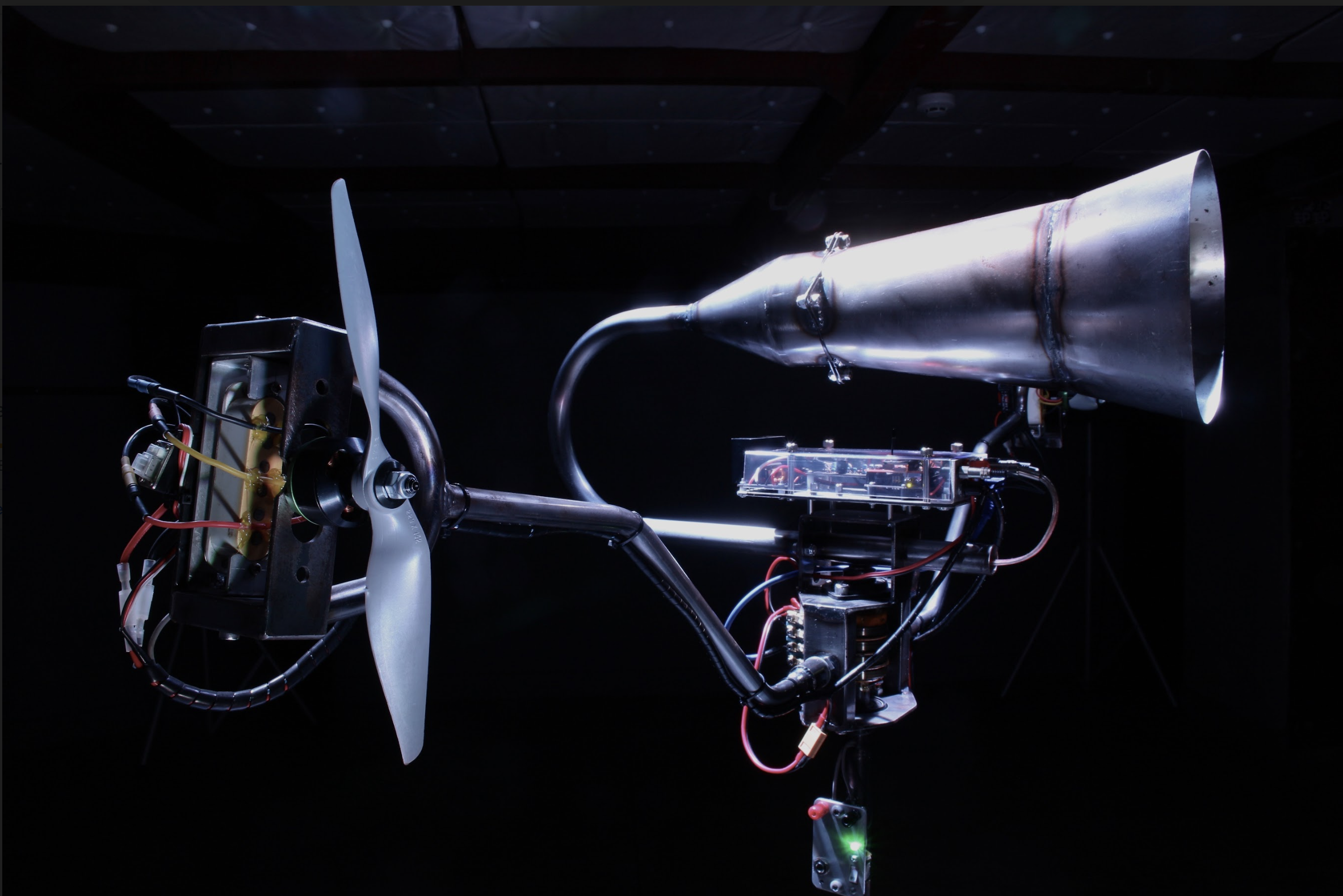 Beyond their impressive visual appearances, its sounds composed of buzzing LED lights, fizzing TV monitors, whirring vents and thunderous engines orchestrate a danceable cacophony.