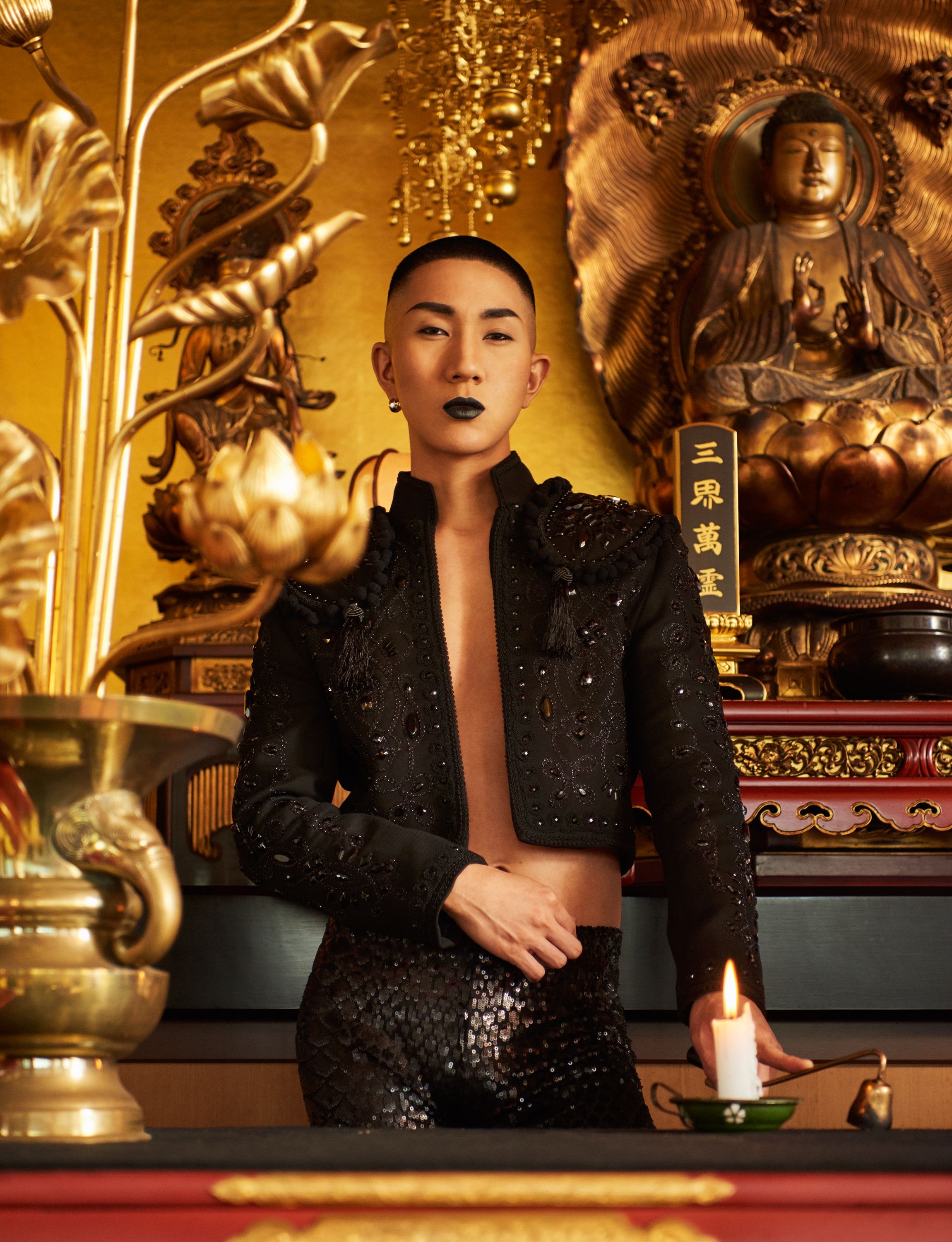 When he finished college, he decided to take a major turn and listen to himself. After all, his name means ‘broad-minded’ and ‘confident’. And what did he dream of? High heels and glitter! He headed to the United States, where he was struck by the more frequent and positive representation that LGBTQ+ people received, and this encouraged him to follow his passions: fashion and makeup. After graduating, he became the assistant to a makeup artist who introduced him to the world of beauty, competitions and television, and his career gradually took shape. However, his doubts and profound questioning did not cease completely, and so he decided to return to Japan to find the answers.