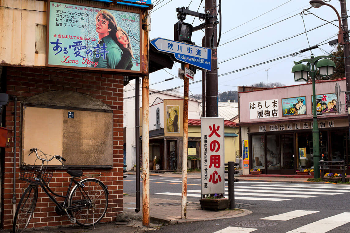 When she arrived, she discovered a town that had lived to the rhythm of film screenings for four decades. Ome was home to three cinemas, which mainly screened foreign films. Film enthusiasts from Tokyo flocked there, before the arrival of television in the 1970s sounded the death knell for movie theatres. Although the cinemas have now closed, there are still painted wooden signs all around the town, which once served as posters. Despite being far from Hollywood and its studios, cinema was everywhere in Ome, and its signs are the remnants of this past in technicolour.
