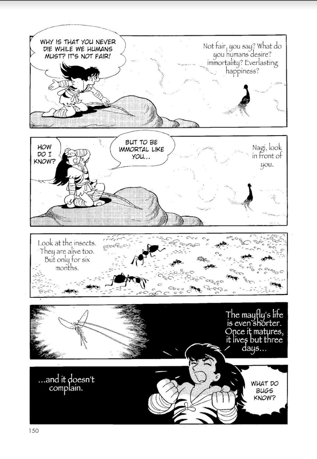 Amongst an abundance of his manga’s considered classics, Phoenix was probably Osamu Tezuka’s most personally relevant as he began writing it in the 50s, an early stage of his career, serialised it in phases across magazines and throughout decades, until it was finally cut short by his death in 1989. Several volumes were adapted into animation, and even a live-action film of its first chapter Dawn featured prestigious Japanese actors. Phoenix was never finished, but it strikingly embodies metaphysical themes, reflecting a unique view of history and predictions of the future through buddhist cycles of reincarnation. Amongst its author’s undying influence, its cosmic narrative reveals something eternal in itself.