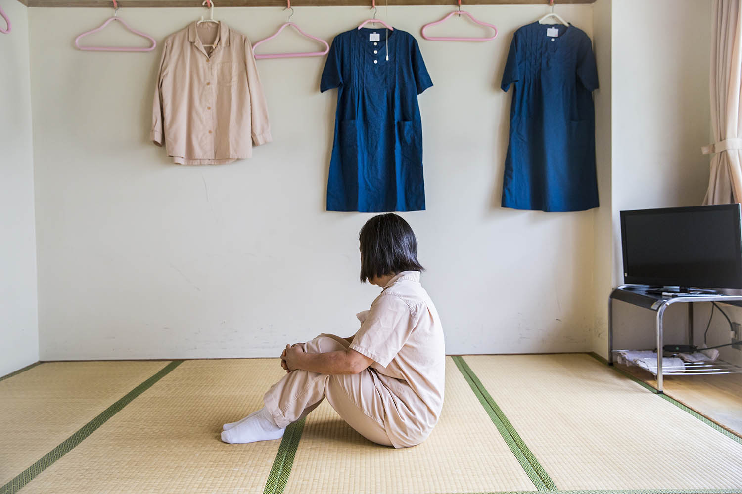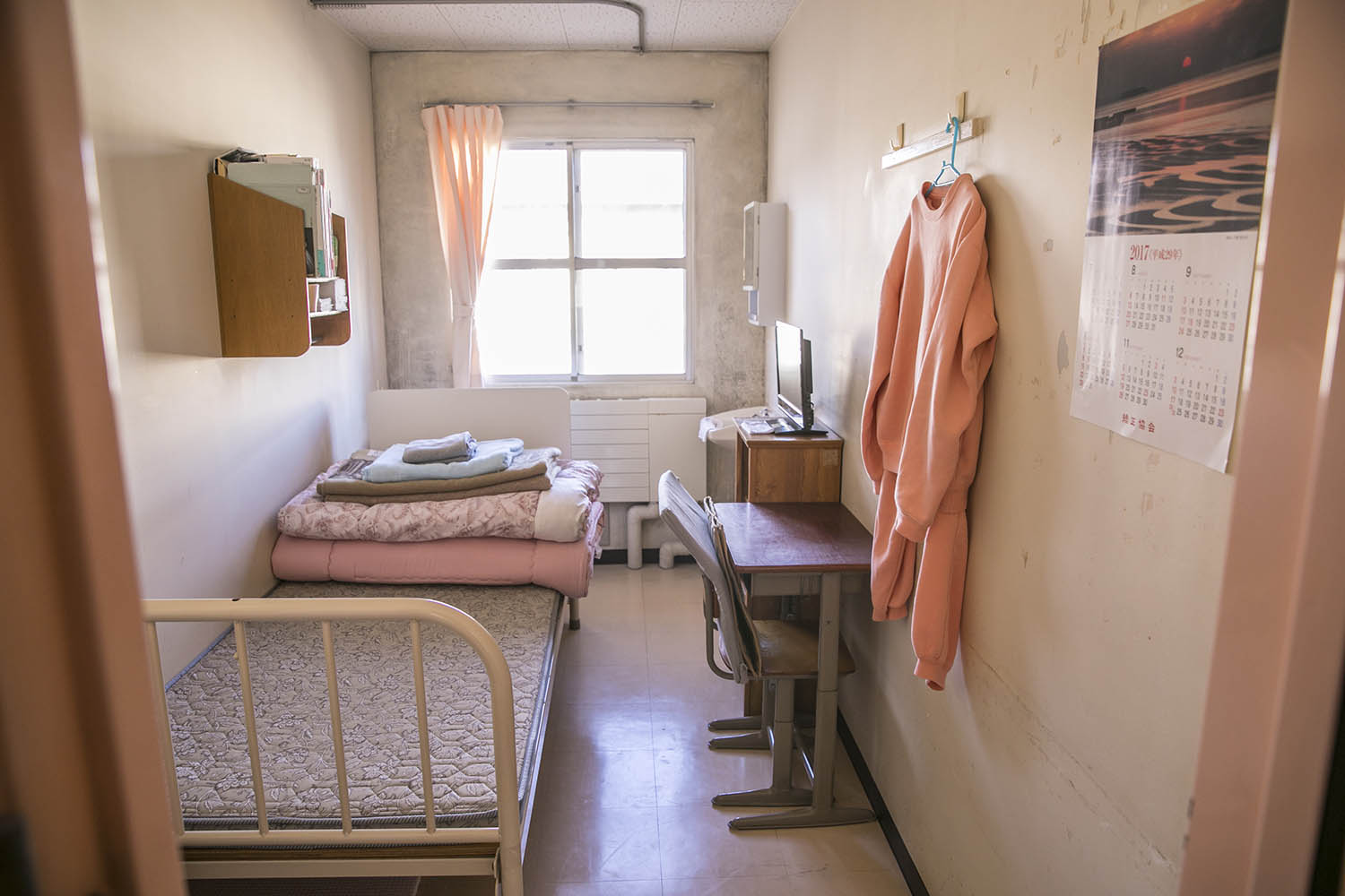 It was when she discovered the Japanese government’s white paper on crime, which underlined the increase in offences committed by the oldest demographic groups, that the journalist decided to work on the subject. She obtained permission to interview and photograph inmates of a women’s prison north of Tokyo. The atmosphere is highly disciplined and behaviour is monitored, in contrast to the physical environment of the prison which has a very stereotypical design: pale pink walls, round windows, statues of mothers and their children, and numerous rose bushes planted in the courtyard. Even the uniform worn by the detainees comes in various shades of pink.