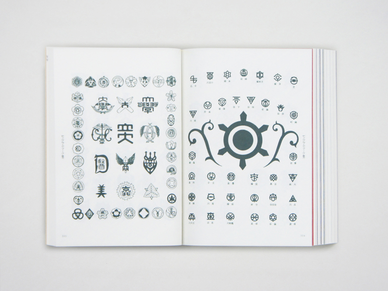 The graphic designer includes traditional Japanese writing systems, hiragana and katakana, as well as glyphs from the Latin alphabet. The book also contains a host of other symbols and ideograms like special characters straight from Katsumi Tsuji’s imagination. Alongside these are company logos, crests of great Japanese families, prefectural and municipal stamps, and badges from educational establishments.