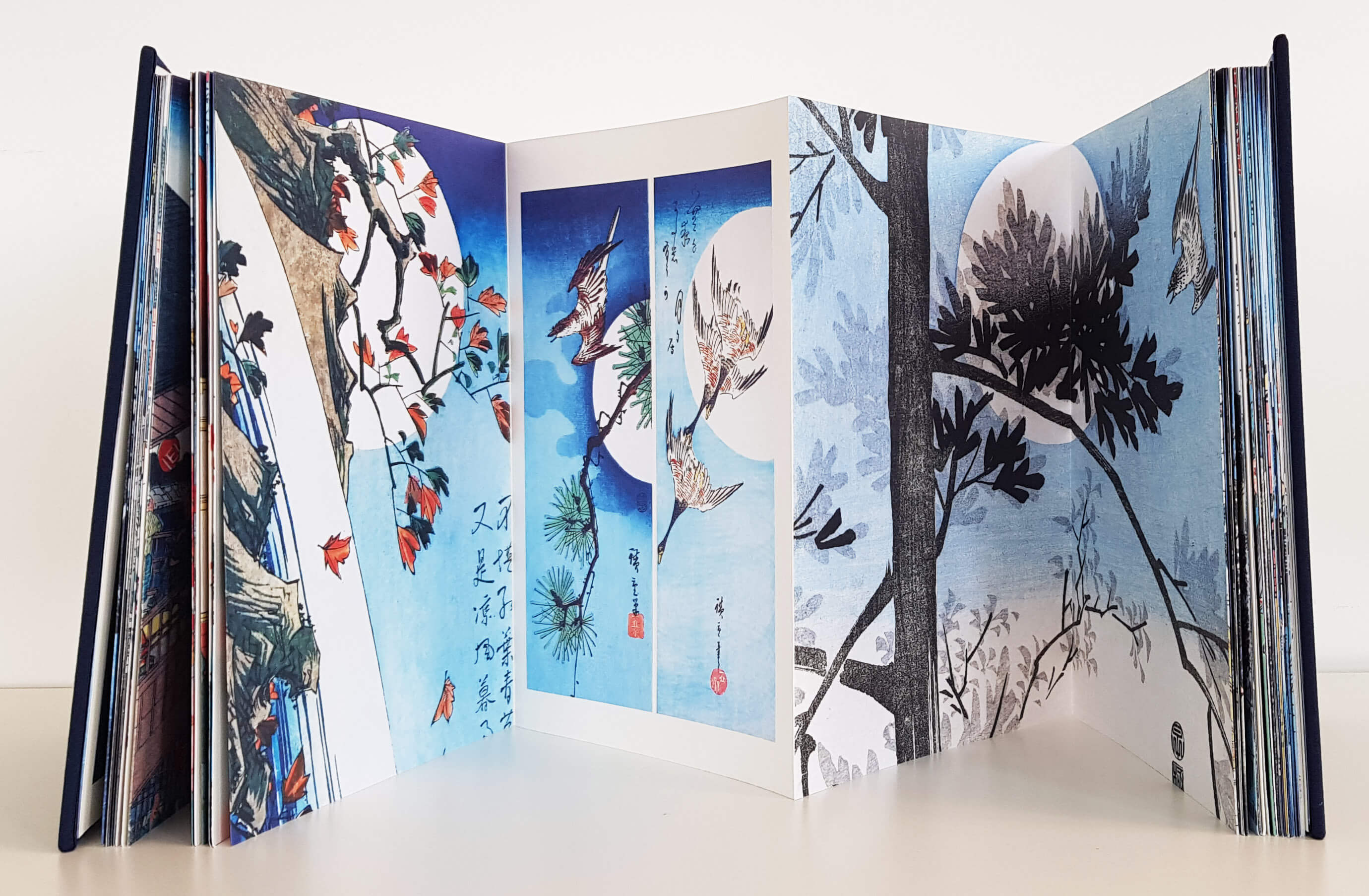 The moon occupies a special place in Japanese society, one that Anne Sefrioui’s book, La lune par les grands maîtres de l’estampe (‘The Moon by the Great Printing Masters’), seeks to examine. This set, made up of a leporello, an accordion-style book that can be folded and unfolded, and an explanatory booklet, offers a comprehensive overview of this star that appears at the boundary between day and night, reflecting light from the sun.