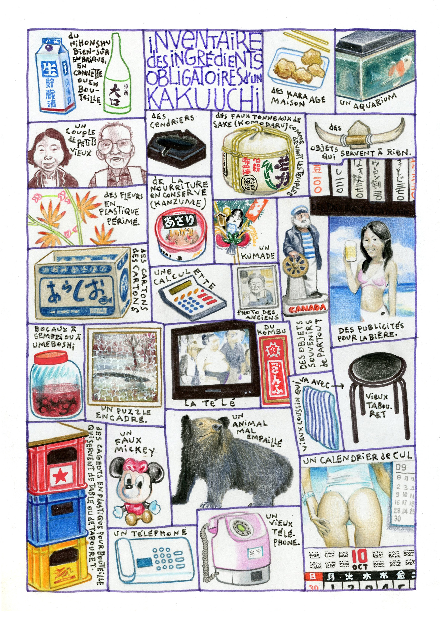 He did, however, take the liberty of freeing himself from the seasonal constraints of this poetic form. ‘Some Japanese friends taught me that they are actually senryu, poems with the same syllable constraints as haiku, but without the requirements related to the seasons’, the illustrator explains in an interview with Pen.