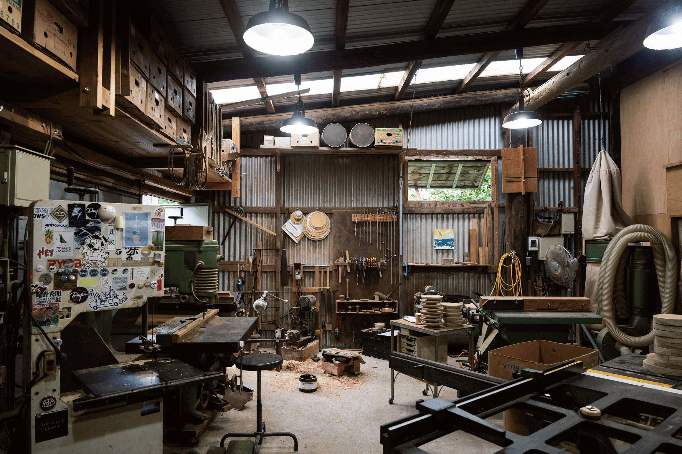 In the protruding space used as a rough-shaping workshop, electric saws, planes and other woodworking machines are arranged in close quarters. Here, purchased lumber is cut into approximate forms according to the size and intended use of each piece.