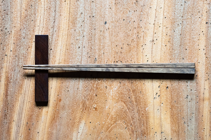 Nakayama Mokkō, the branch of Mokushikkō Tokeshi dedicated to wooden objects, also develops pieces in collaboration with the Okinawan design studio Luft. Among them are square chopsticks in ‘itajii’ and cutlery rests in ‘sōshiju’. Each edge of the chopsticks is carefully chamfered, creating a gentle grip and a form that naturally follows the hand.