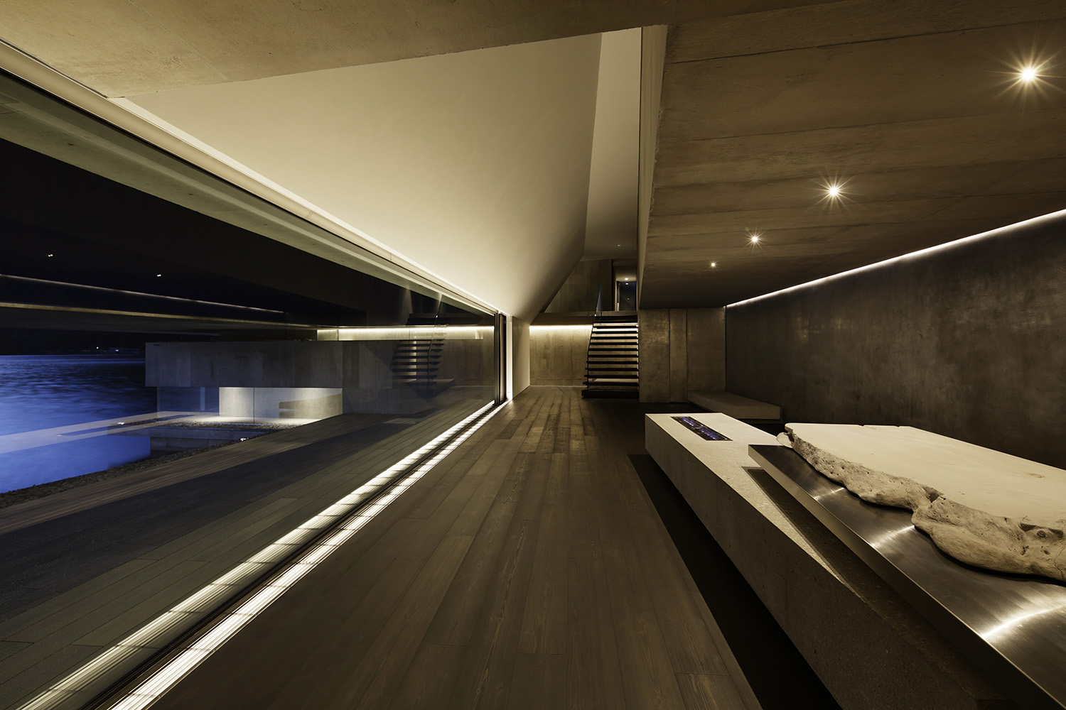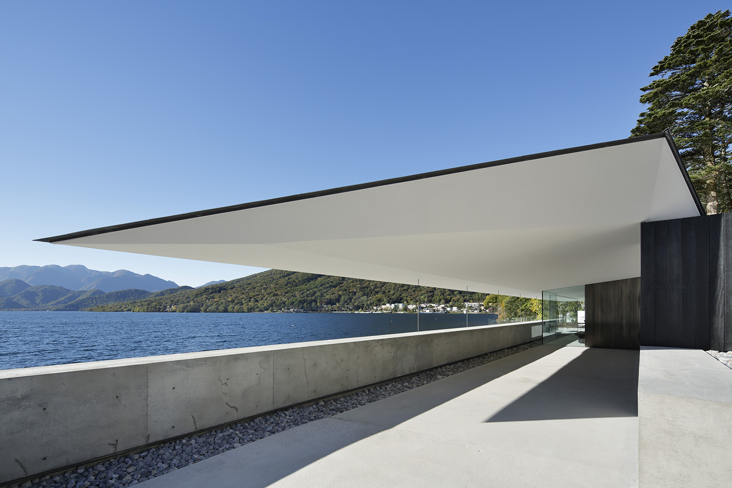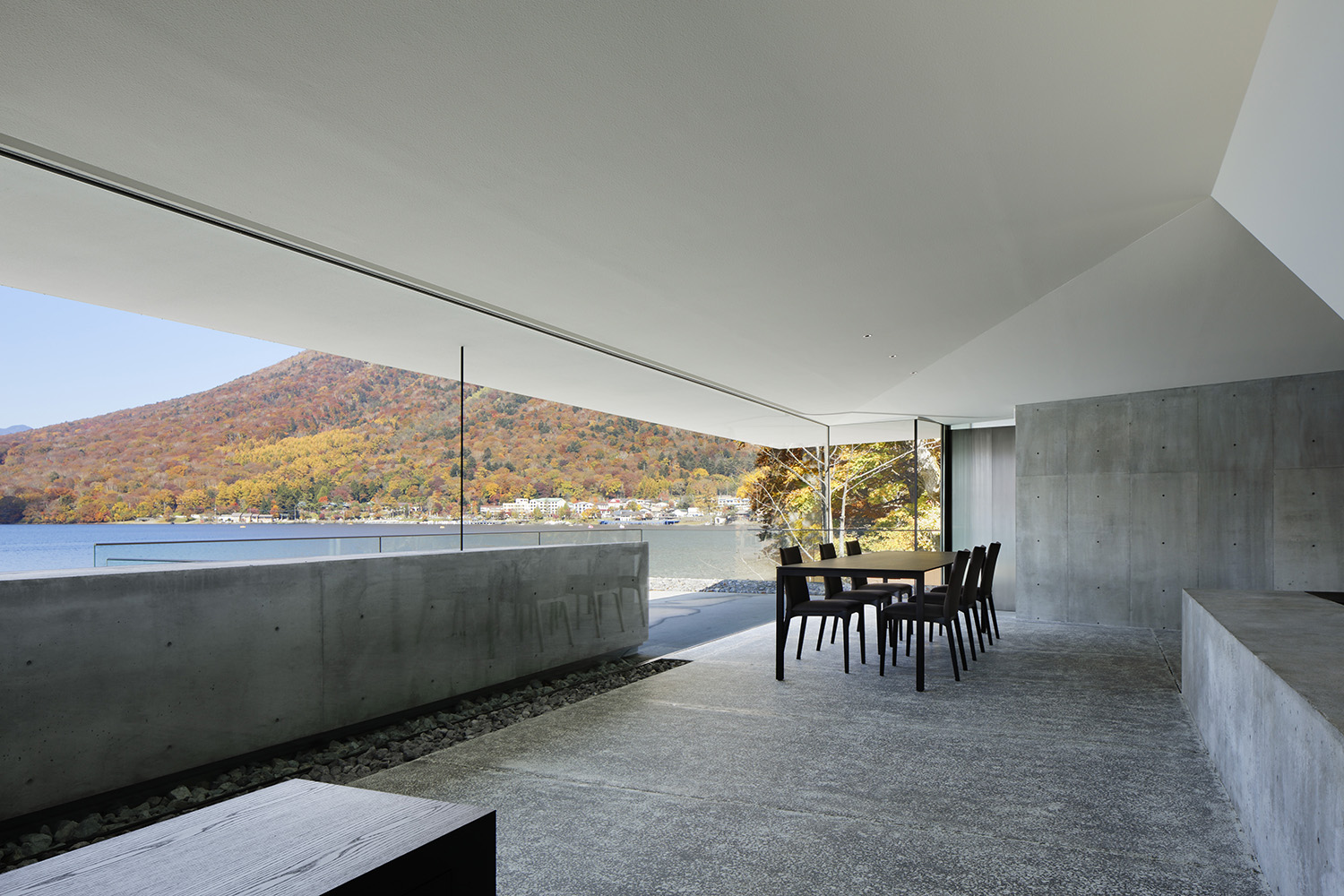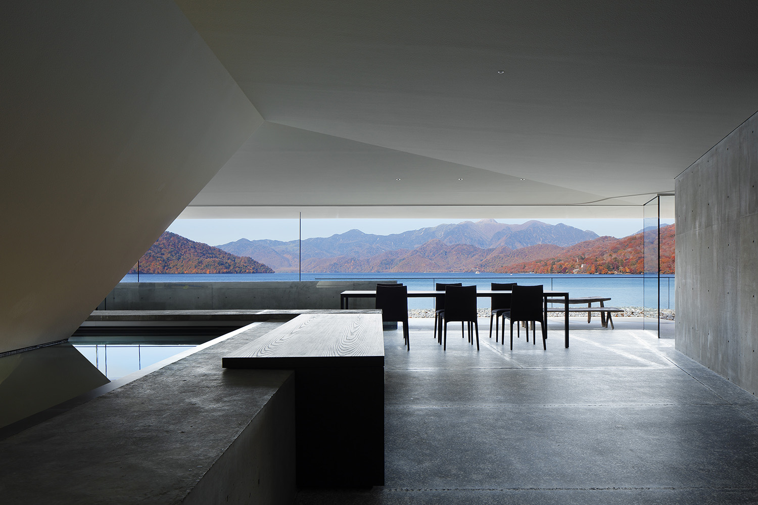 On the Water is a guesthouse designed by Nikken Sekkei, the biggest independent architectural firm in Japan. The villa is situated on the edge of the Chuzenji-ko lake in Nikko, Tochigi prefecture. With its two floors and very geometric feel, it was designed as a game of spirals. As the rooms connect, the landscape and temperature change so that the inhabitants are always surprised, whatever the season.