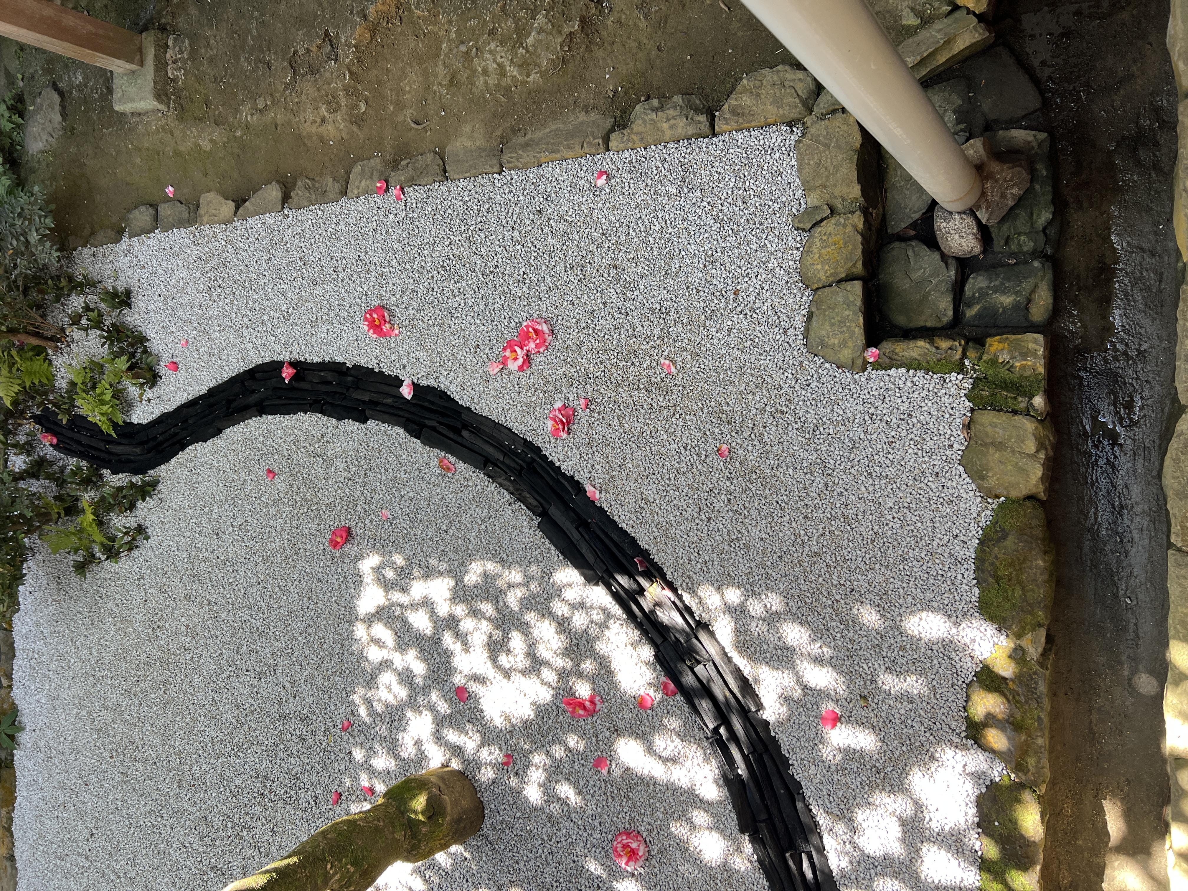 The Japanese garden, seemingly simple yet possessing a raw beauty capable of eliciting complex reflections and intense emotions, takes on another dimension in April. The vibrant colors of fallen camellia petals then carpet the ground, presenting a landscape of striking splendor—the fruition of the encounter between art and nature. Fortunately, this spectacle unfolds during one of the two periods when Honen-in opens its doors to visitors. During the first week of April and the third week of November, Empty River unveils its rare landscape, all the more precious for its rarity.