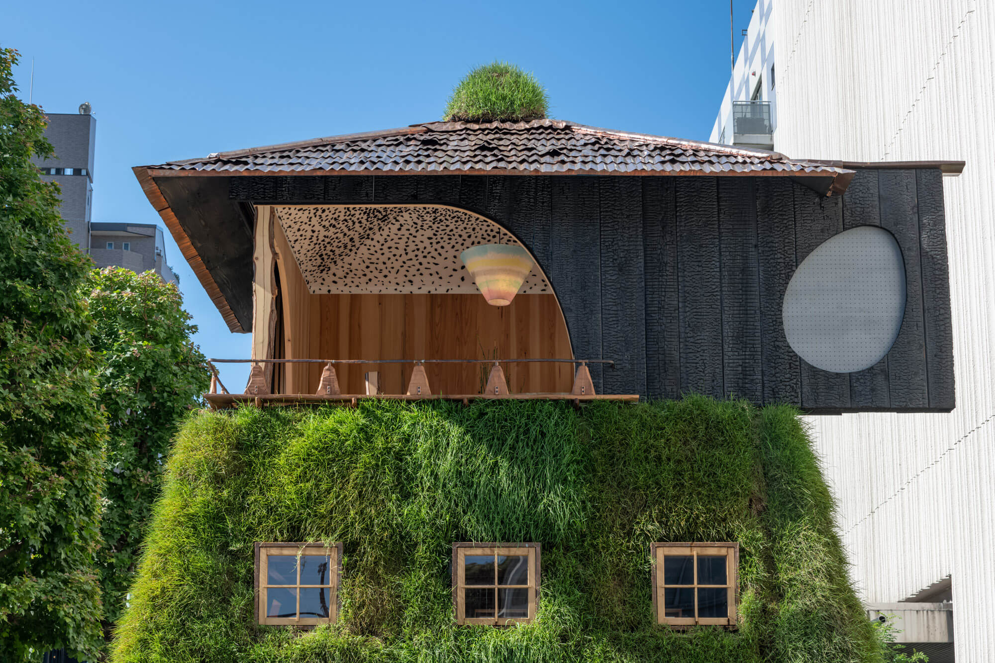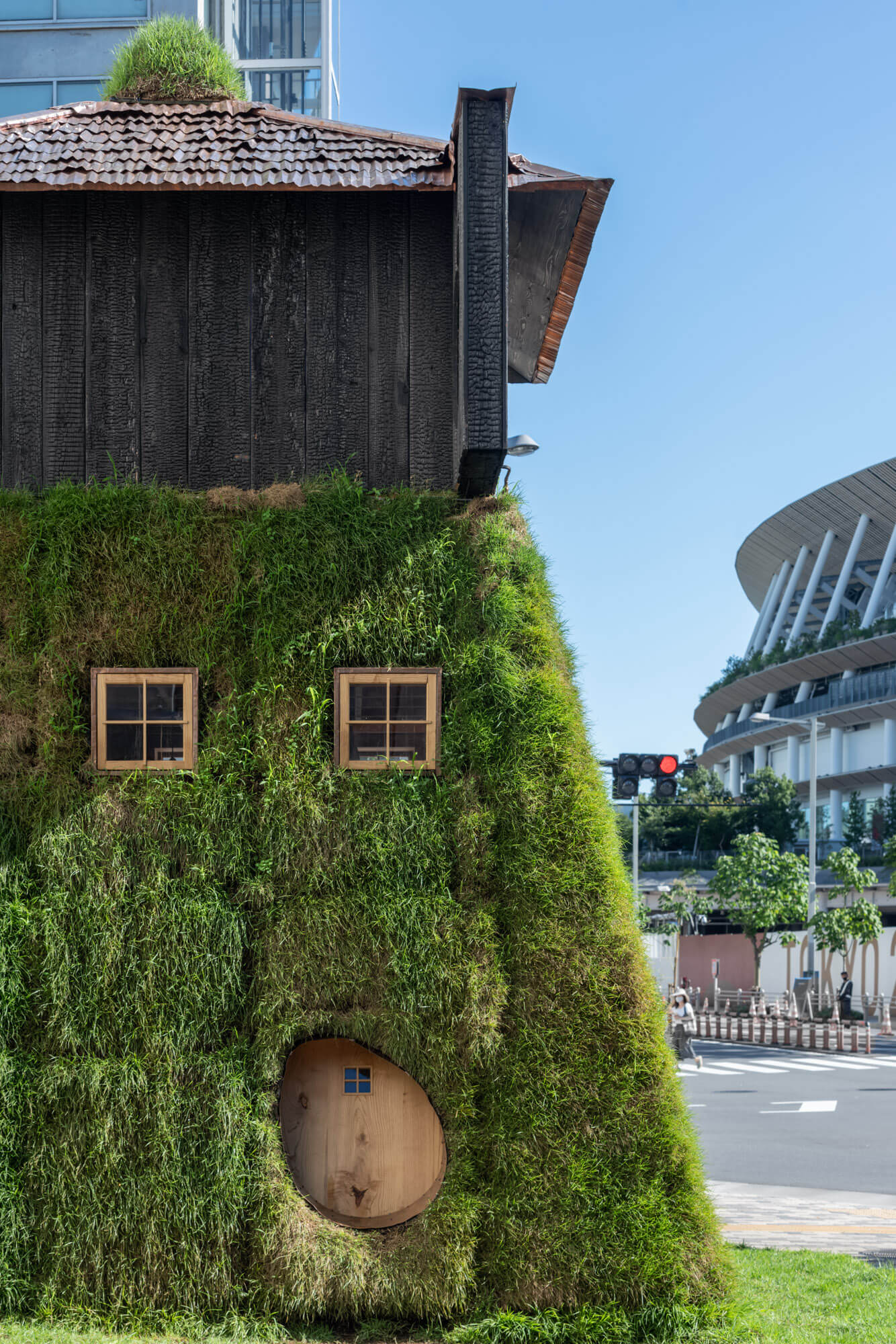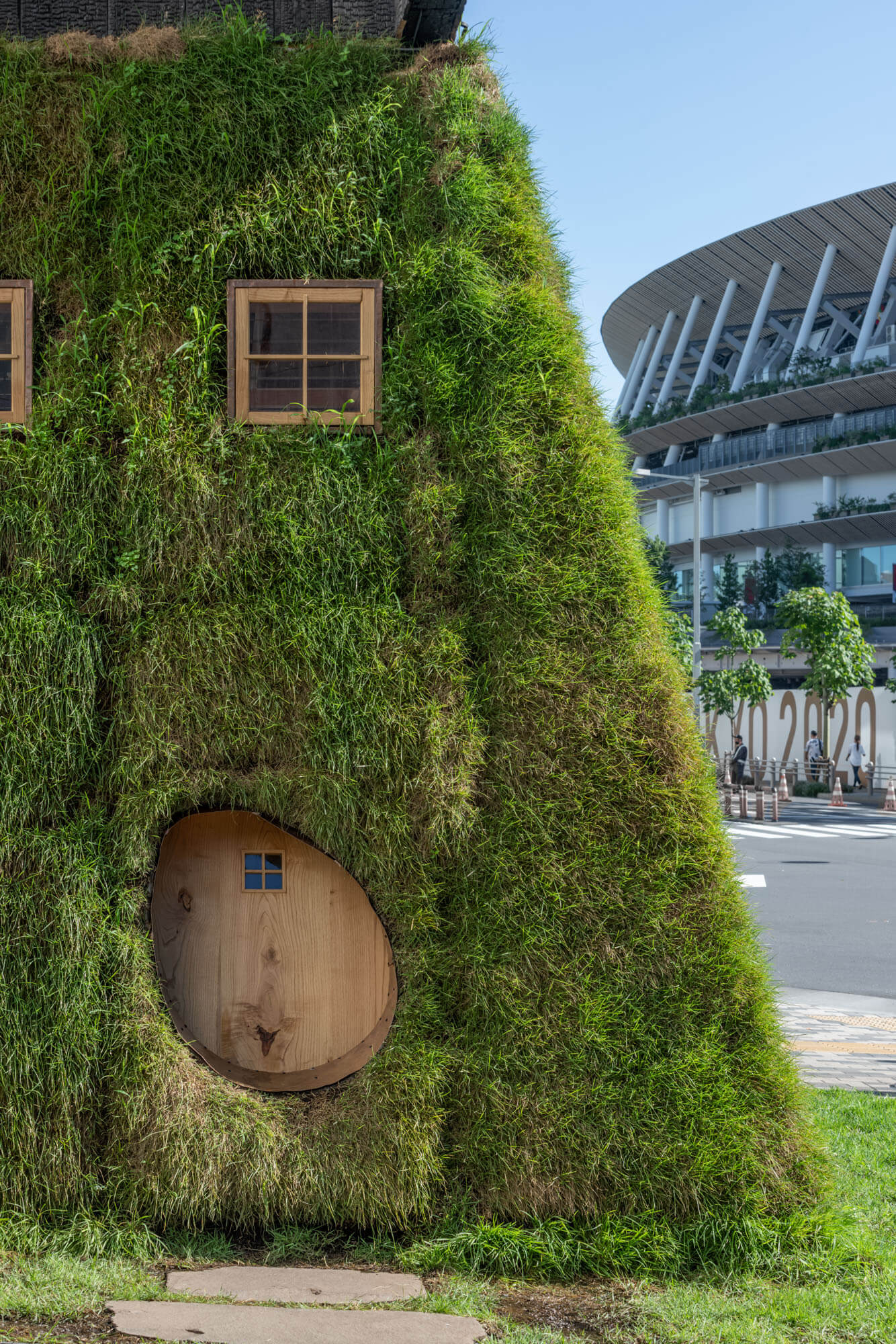 This building named Go-an, the base of which is covered in grass, was an ephemeral structure built for the 2021 Tokyo Olympic Games.