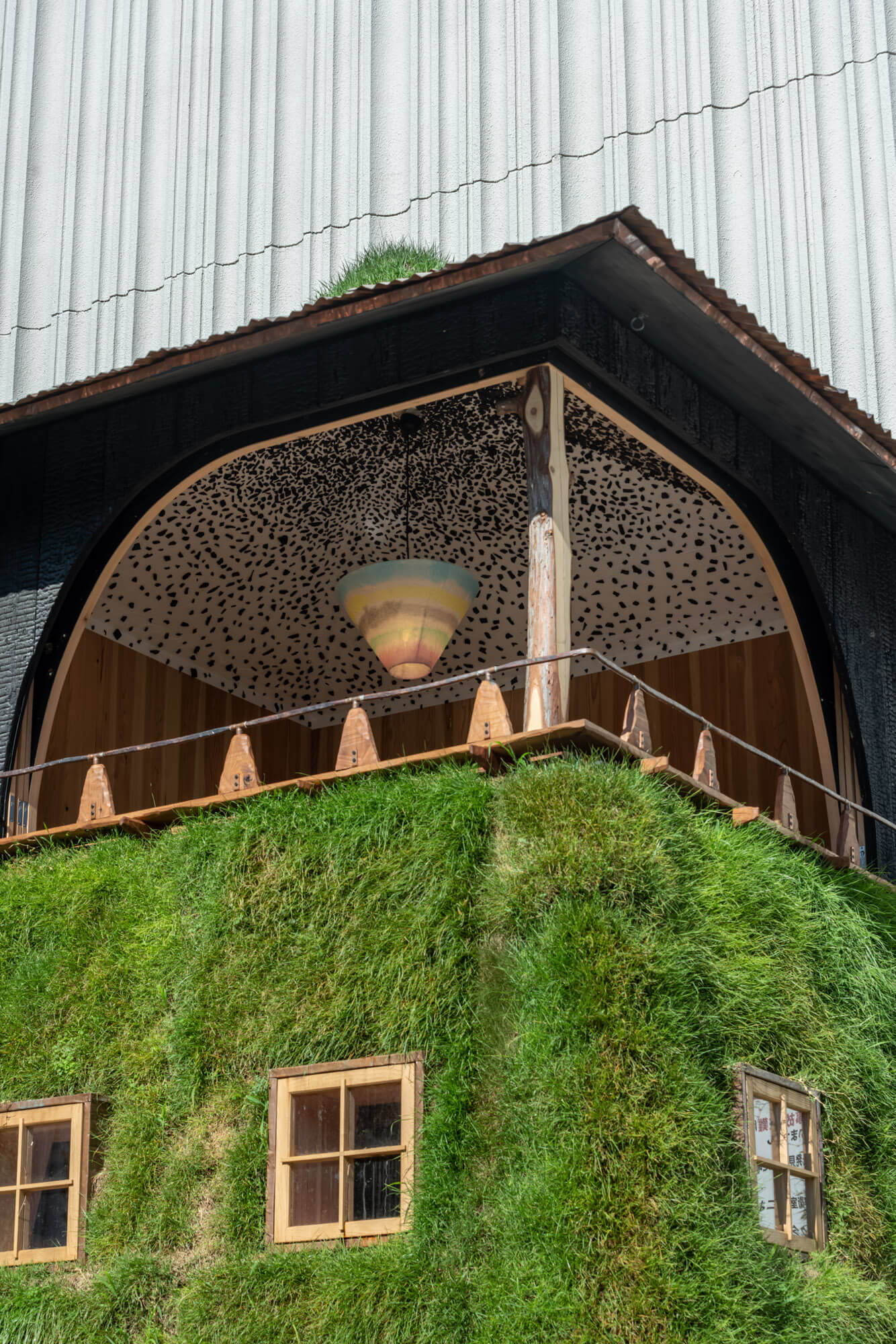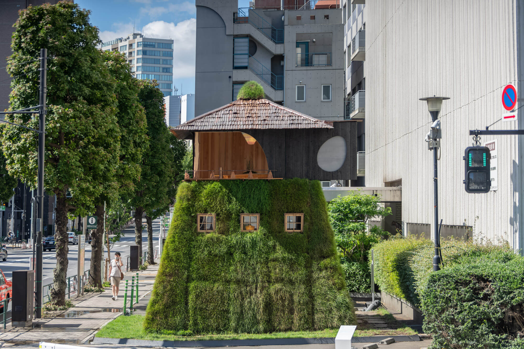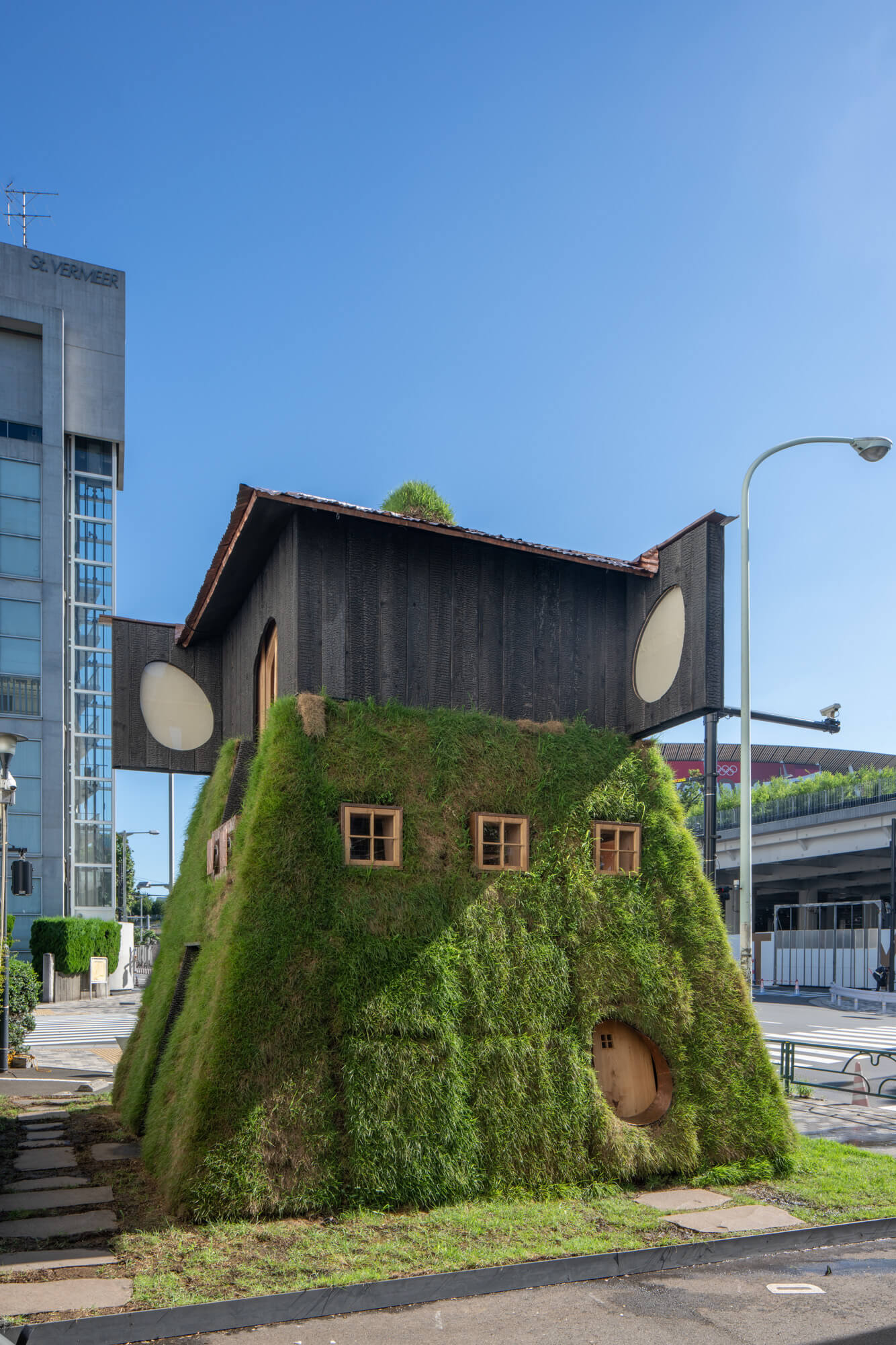 This building named Go-an, the base of which is covered in grass, was an ephemeral structure built for the 2021 Tokyo Olympic Games.