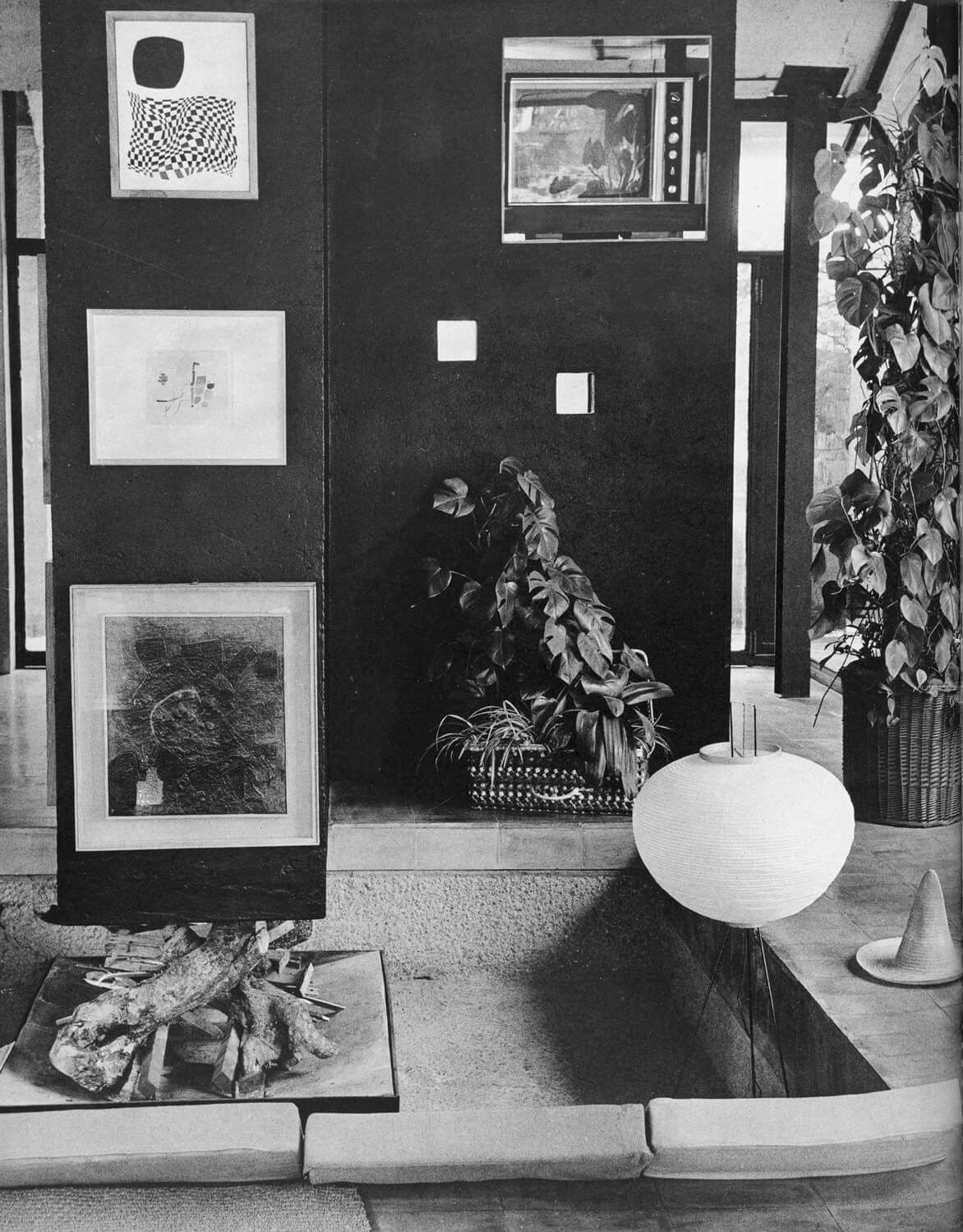 Détail du salon de la villa de l’industriel Duccio Reggiani près de Bergame (Italie) avec un Akari 10A d’Isamu Noguchi / © Magazine L’Oeil - Pierre Berdoy. Source : « Villa Reggiani », L’Oeil n°99, mars 1963, p. 64, photographie par Pierre Berdoy