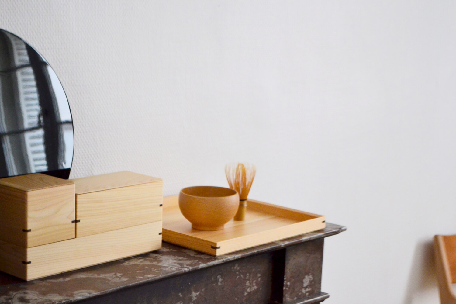 There are also some little modular boxes, Hako, which employ the kumiki technique of wood assembly without screws or nails, and which are made from Hinoki, an endemic type of wood which only grows in Japan and Taiwan.