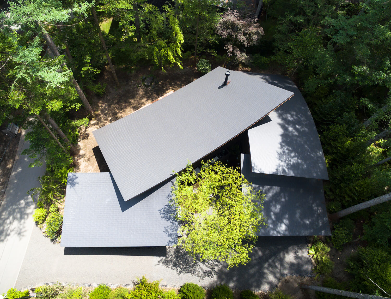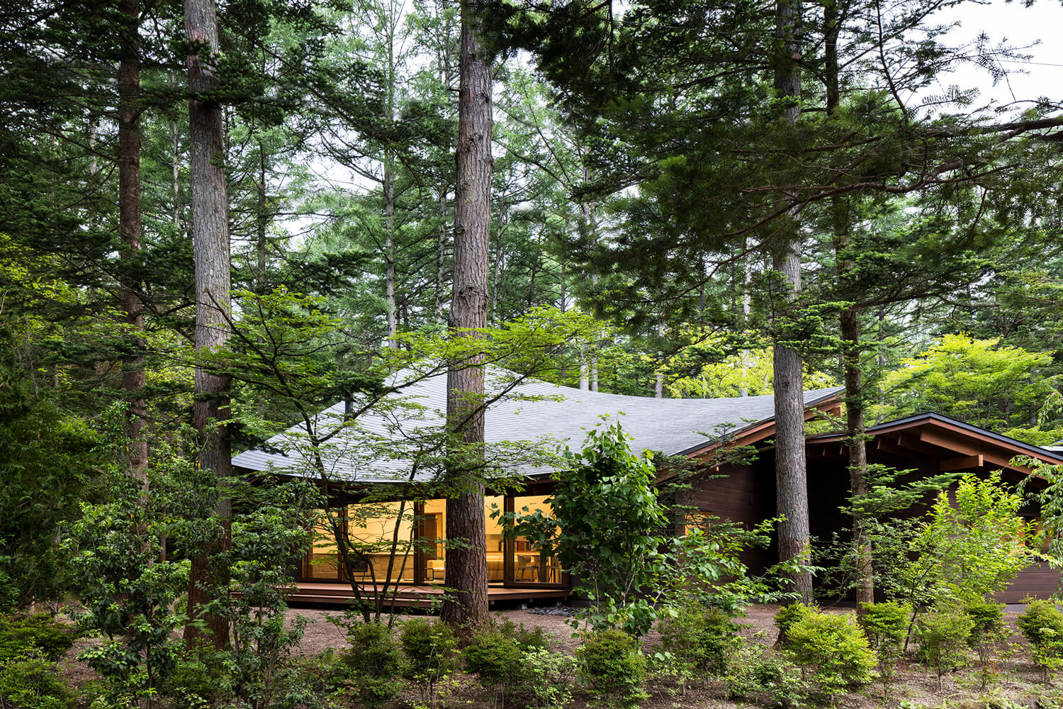 Located in the Karuizawa forest, the ‘Four Leaves Villa’ blends into the landscape thanks to its structure that imitates a pile of leaves.