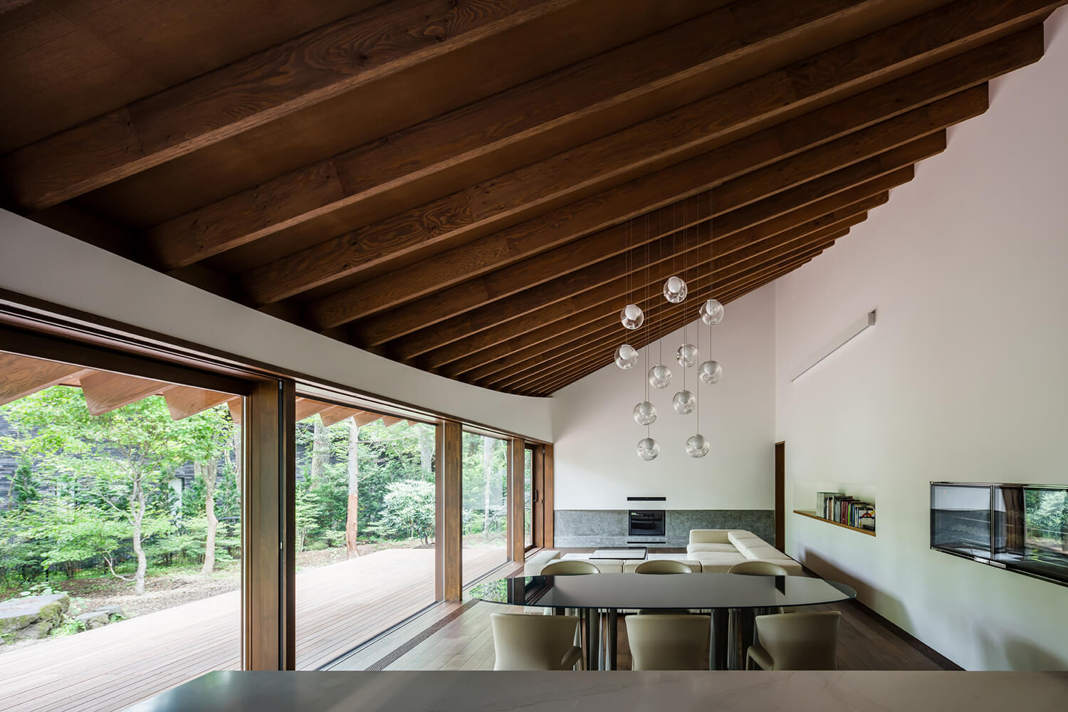 Designed by architectural studio KIAS (Kentaro Ishida Architects Studio), the Four Leaves Villa is a holiday home just an hour away from Tokyo by shinkansen, at the foot of the active Mount Asama volcano. It offers its guests an environment that respects nature while also being directly inspired by the surrounding forest of Karuizawa.