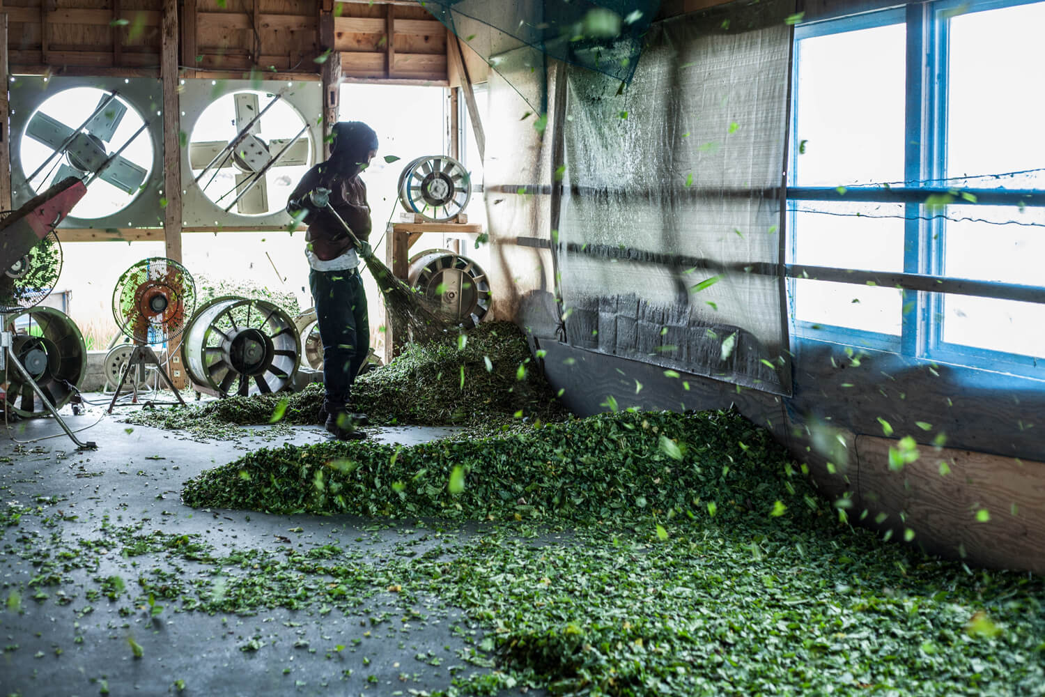 Today, Buaisou is run by six people. Five craftsmen who are responsible for farming and dyeing, and Kaji, the director of the team. ‘We wanted to create the colour all by ourselves’, he explains. ‘Everything is done on-site at our farm, as much as possible’.