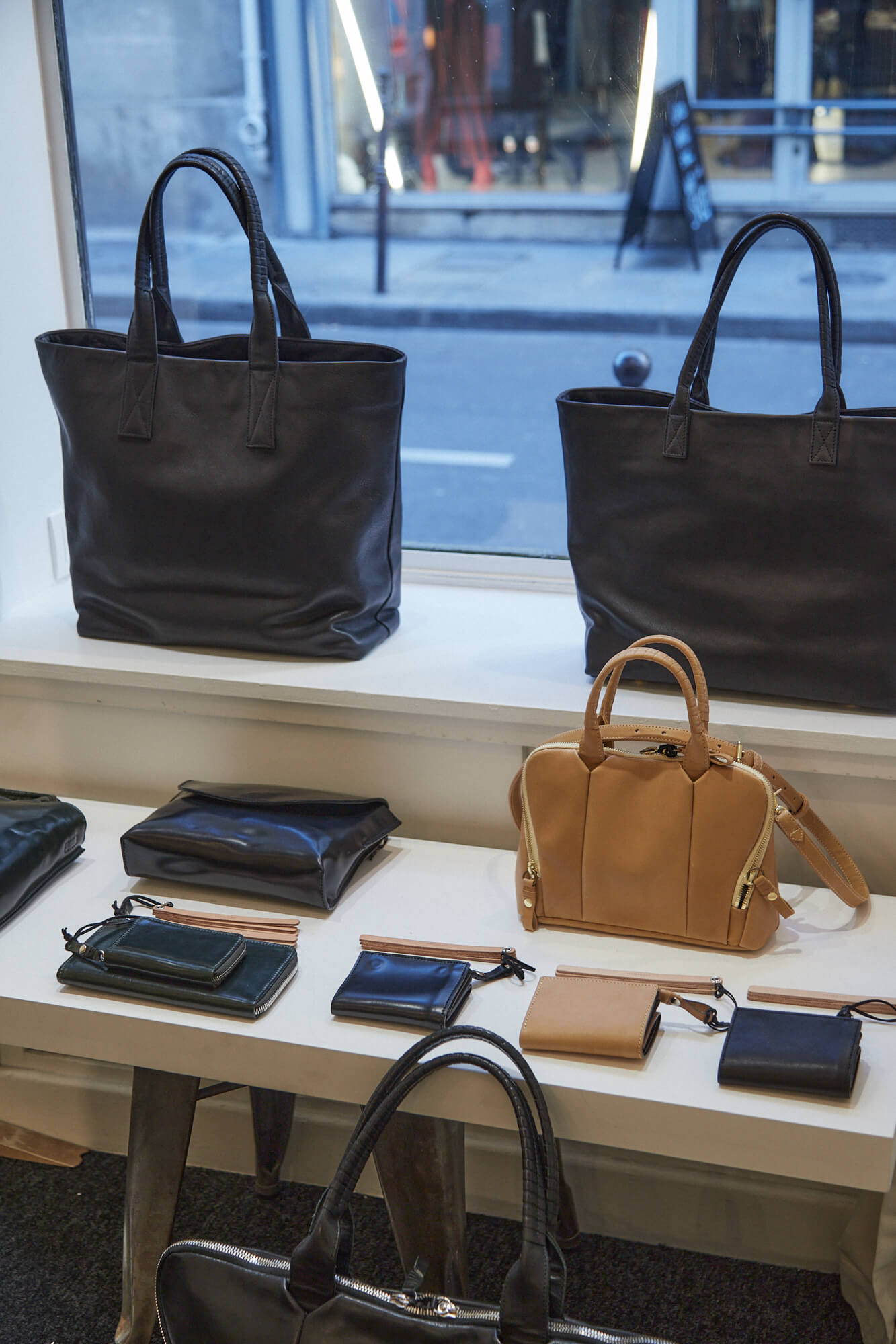 To create while being involved in the smallest details of production, close to the tanners, producing and consuming locally is essential. ‘Honestly, in terms of history and context, there are certain points where we cannot beat European leather. Japanese leather has a beauty of its own. For example, abroad, it is considered natural for leather to be scratched or for its quality to vary. Whereas in Japan, leather tanning was introduced after industrialization, so the manufactured leather is of constant quality. Moreover, the tanners of HYOGO LEATHER are nearby, which allows us to delve into the details with them. Many are sincerely attentive to what we would like to produce and what we propose to them, always ready to take on challenges. We trust them because we know they will succeed even if the production process is complicated.’