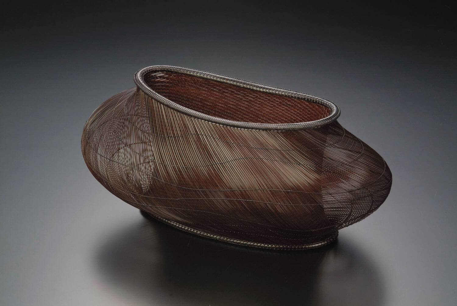 Hajime Nakatomi didn’t always see himself working with his hands. Indeed, his university course saw him sitting in lectures at Waseda University in Tokyo, where he studied marketing. It was then that he was struck by the beauty of the work produced by Shono Shounsai (a living national treasure in Japan), and abandoned a promising career to instead take up an apprenticeship in artistic basketweaving.