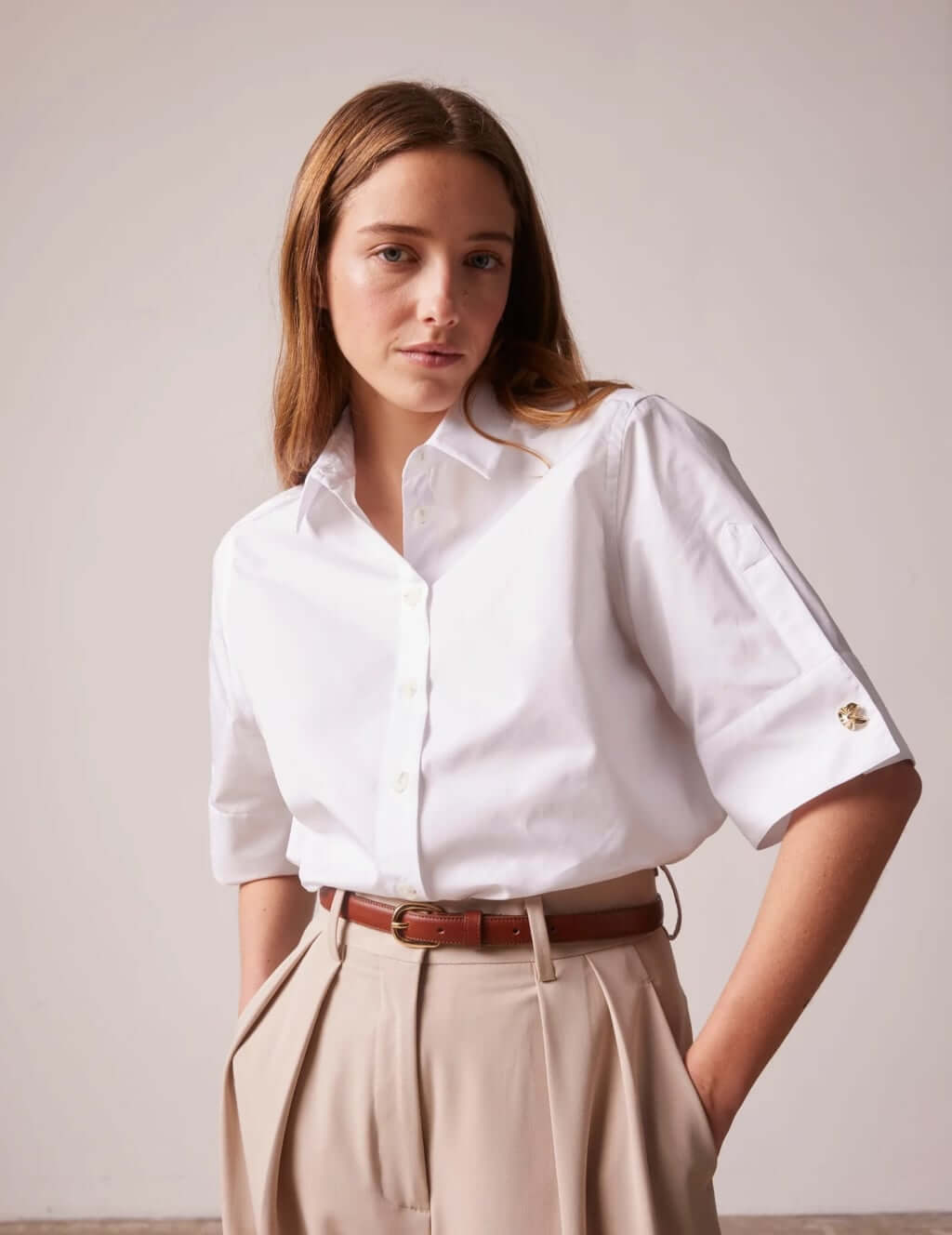 ‘Jane’ short sleeve white poplin shirt inspired by director Jane Campion, $245.