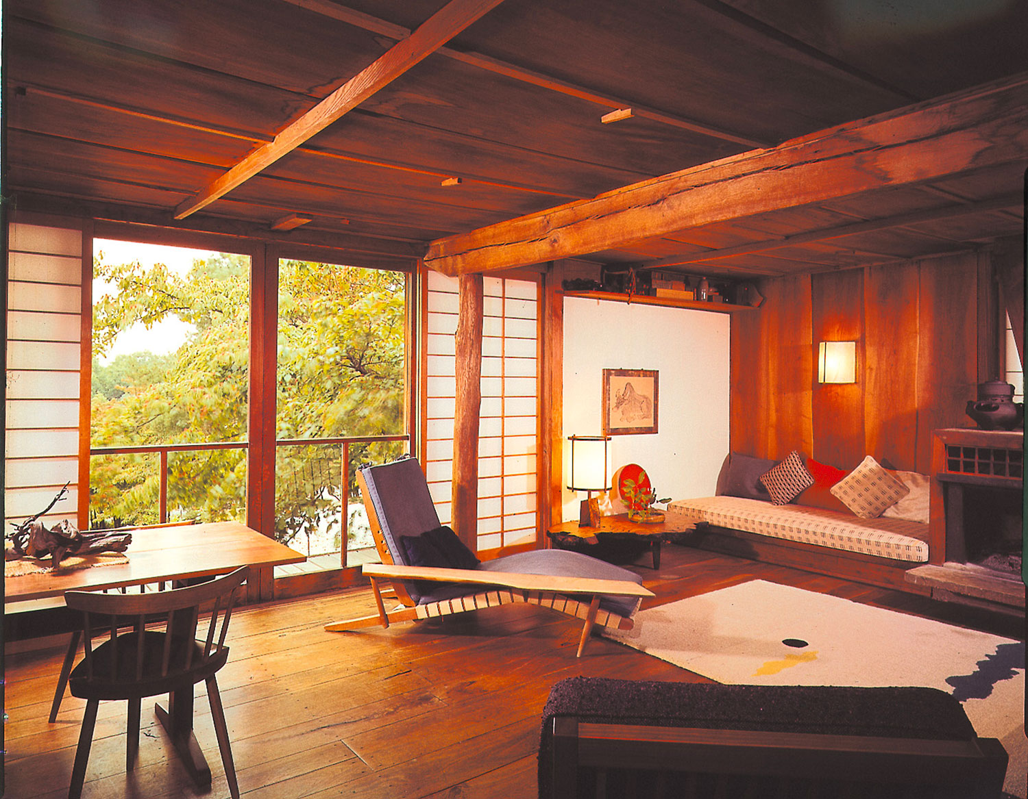 The estate is infused with the philosophy of George Nakashima, for whom architecture, furnishings, and the landscape had to be juxtaposed in an almost symbiotic manner. He inherited this tendency from his history and its intermingling of the United States, Japan, India, and France. Following his death in 1990, his daughter Mira took over the reins of the estate, where the George Nakashima Woodworkers’ studio continues to design furniture, perpetuating the artist’s philosophy and aesthetic. The property can be visited by appointment.