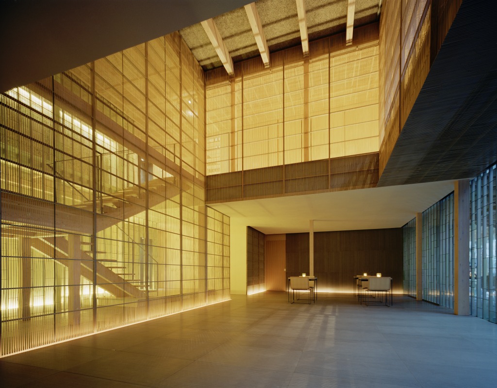 This atrium is another addition from Kengo Kuma. Designed to act as a link between the hotel and the outside, this space is surrounded by a bamboo screen, which allows light to filter through at the brightest hours of the day, maintaining a soft, shady atmosphere.