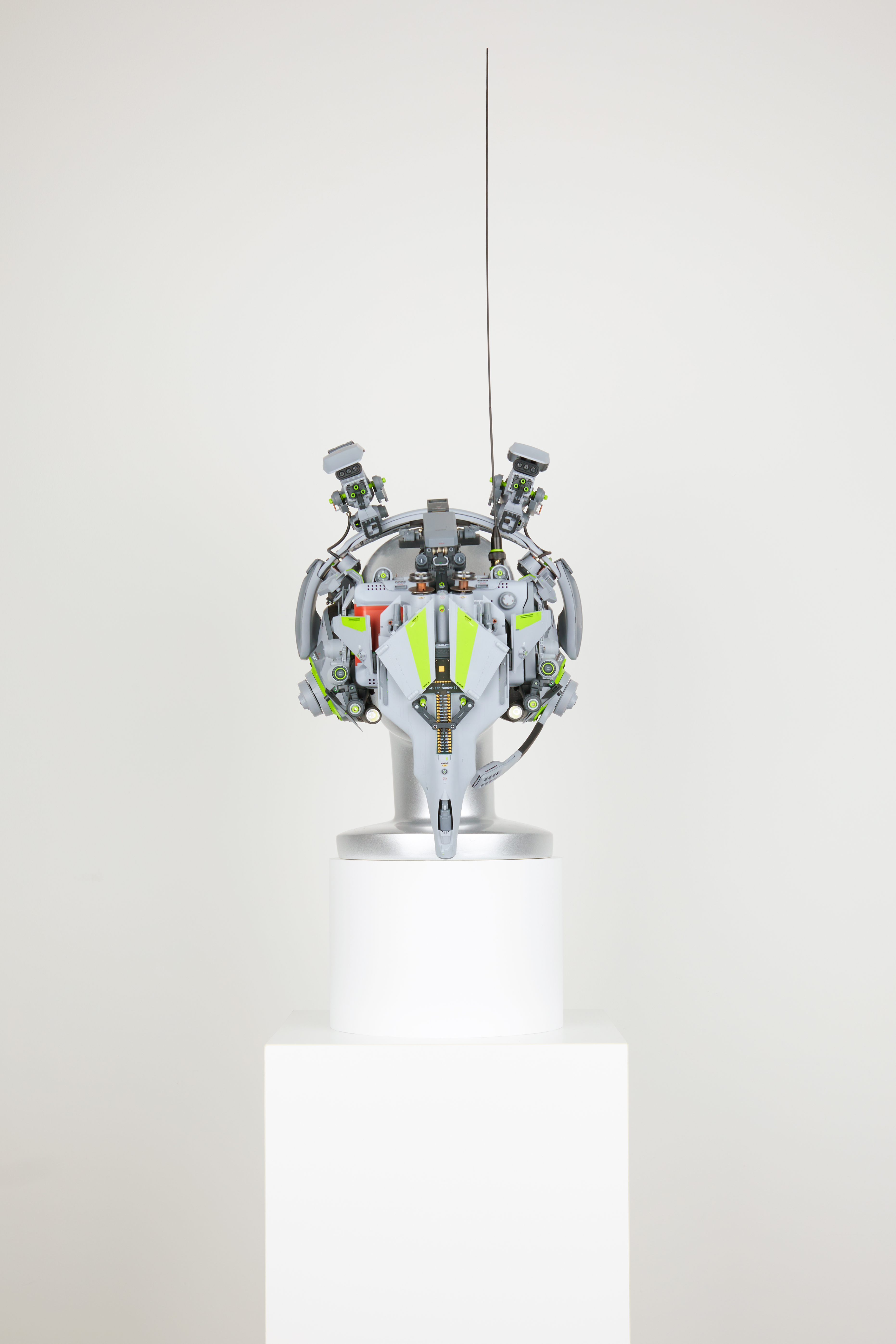 A graduate of Tama Art University, Hiroto Ikeuchi’s futuristic approach stems from an idea to engage with the interior world of computers as a personal ‘secret base’. Aside building on them using plastics, circuit boards and electrical wiring, his sculptural experiments draw from the fantasies of Plamo—Japan’s plastic modelling culture—and draw extensively from the imagination of popular science-fiction, like Star Wars, Gundam or Neuromancer.