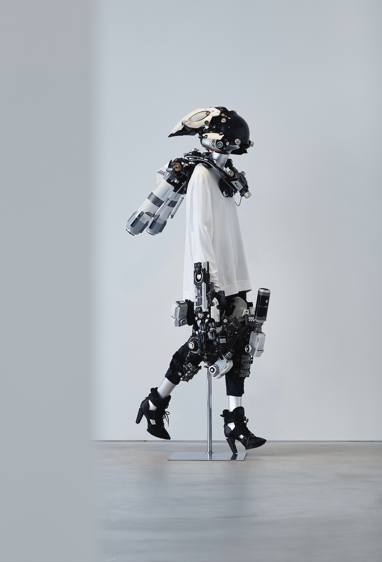 Incorporating elements of cutting-technology rapidly assimilated into our daily lives, the sleek near-future hinted by Hiroto Ikeuchi also inspires a sense of disturbance. Laced with the future-orientated optimism of previous decades, his exoskeletons and augmented bodies depict an imminent world of total mechanisation and surveillance. While this may be the case, in his works delving deeply into the relationship between humanity and technology, we are also reminded the future is a question of our imagination. Hiroto Ikeuchi’s cyberpunk, assembled from the fragments of our contemporary technological climate, projects a sombre future—but their elaborate demonstration reminds us that it is only one future of many.