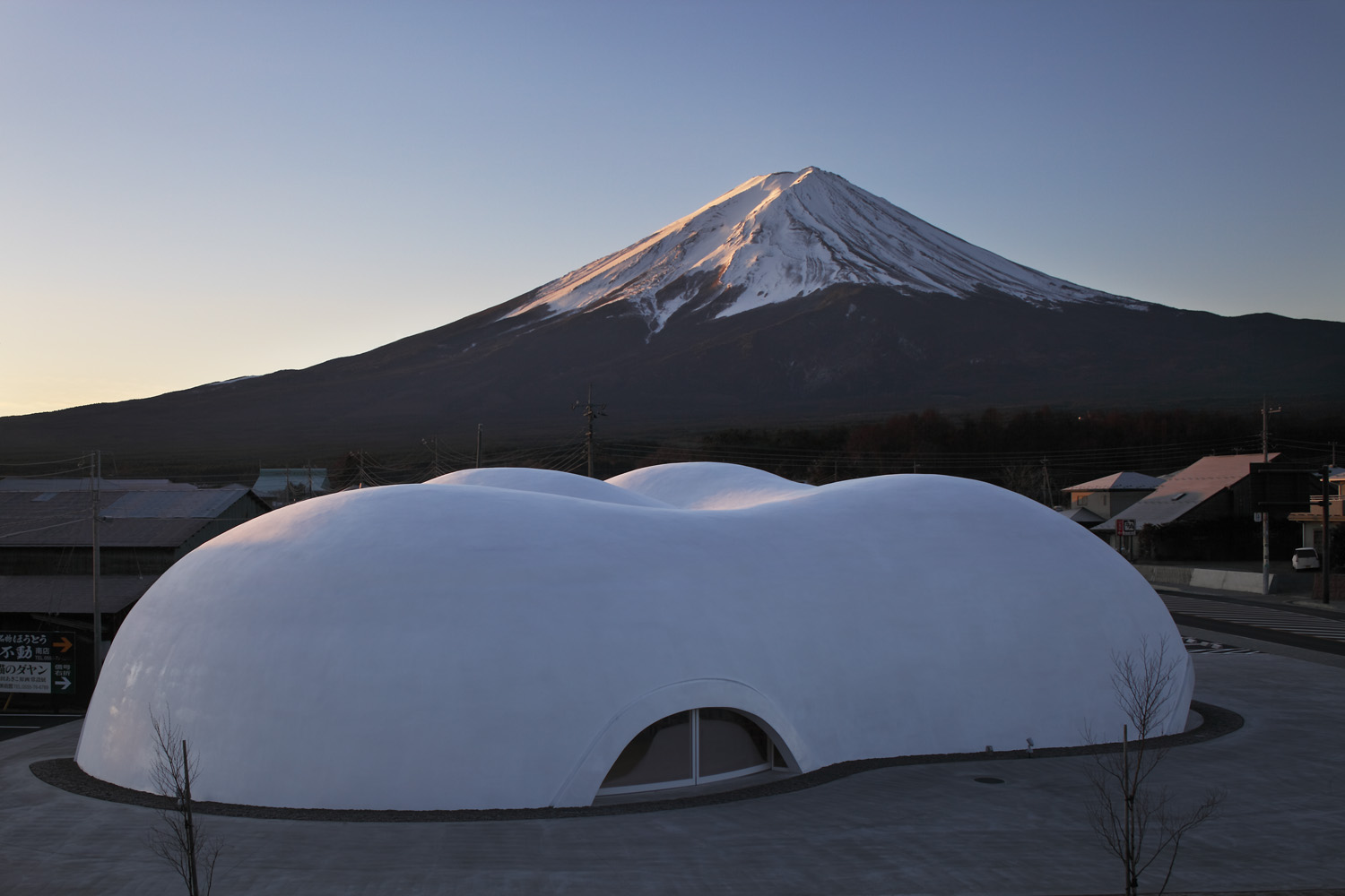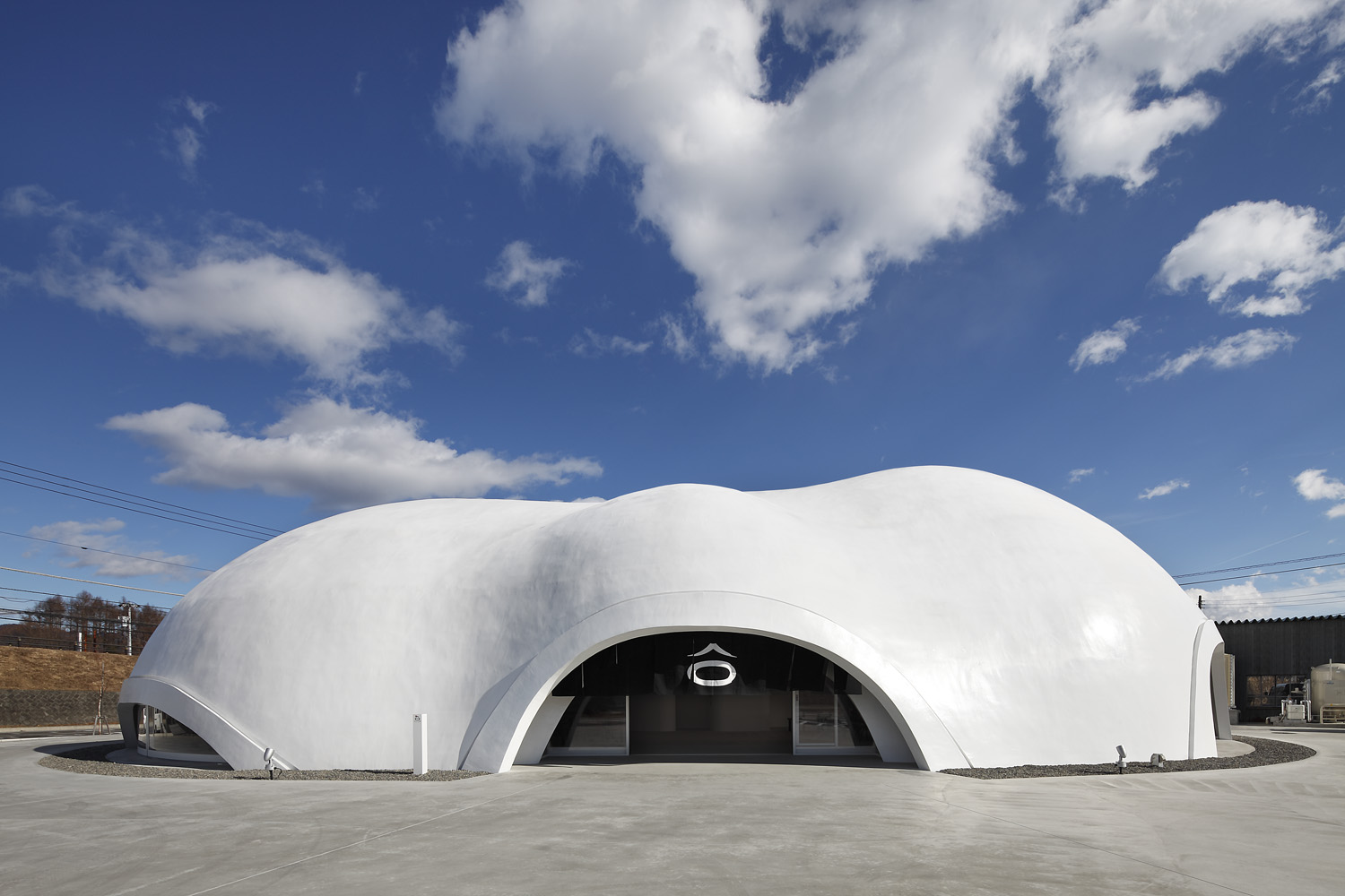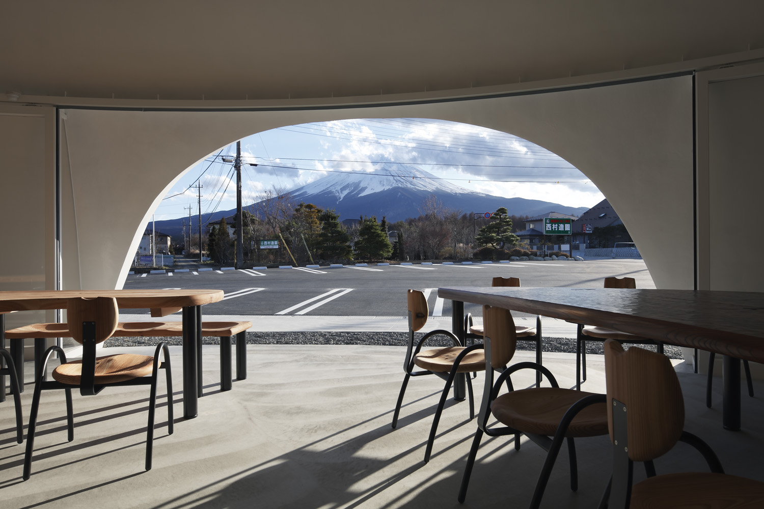 A few kilometres from Mount Fuji, the firm Takeshi Hosaka Architects designed a building with a light, rounded shape, which is home to a restaurant that serves hoto, a noodle speciality from the Yamanashi region.