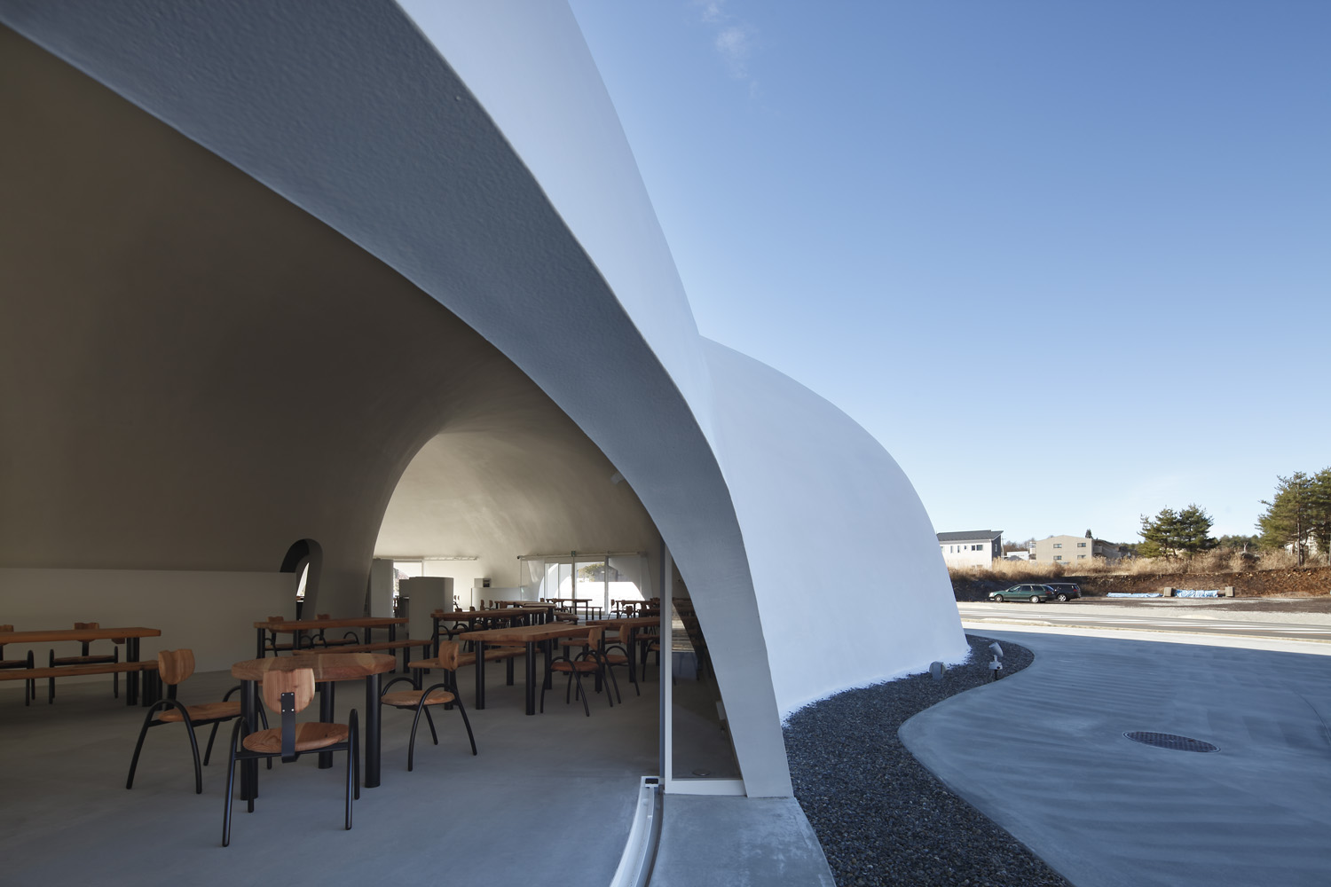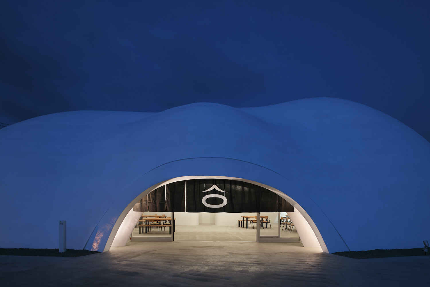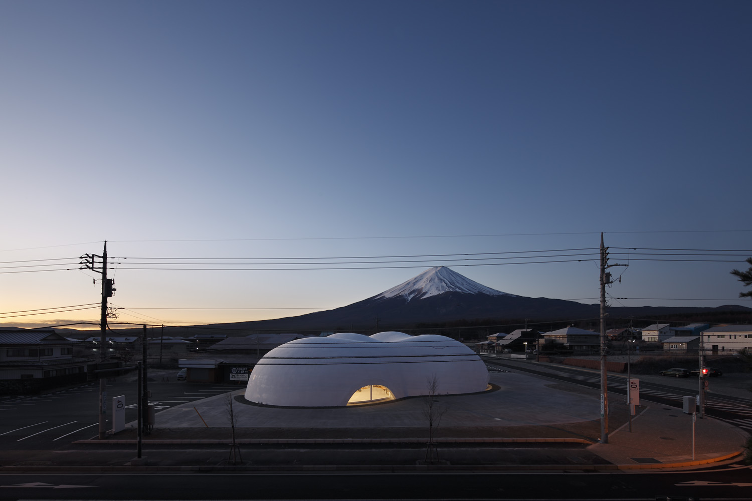 A few kilometres from Mount Fuji, the firm Takeshi Hosaka Architects designed a building with a light, rounded shape, which is home to a restaurant that serves hoto, a noodle speciality from the Yamanashi region.