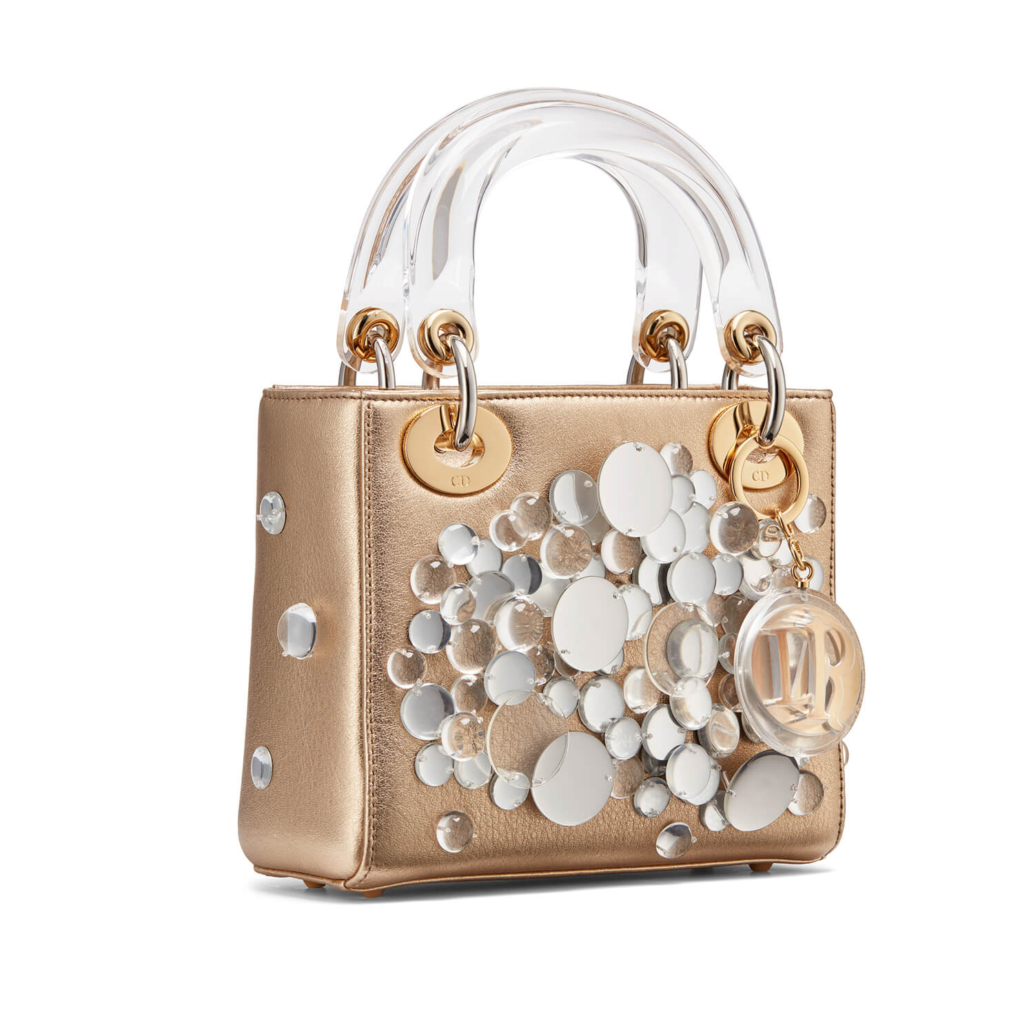 Among these women is plastic artist Haruka Kojin, who has created two versions of the Lady Dior, in gold and in silver. For this unprecedented collaboration, Kojin wished to take inspiration from ‘a night-time bus journey and how landscapes change with speed’, as she explains to Dior. This poetic form of inspiration defines the Japanese artist’s dreamlike universe. This modern reinterpretation recalls Kojin’s ‘Contact Lens’ installations to some extent. This grandiose and immersive work subtly explores the deformation of reality with the help of suspended mirrors which transform perception and space.