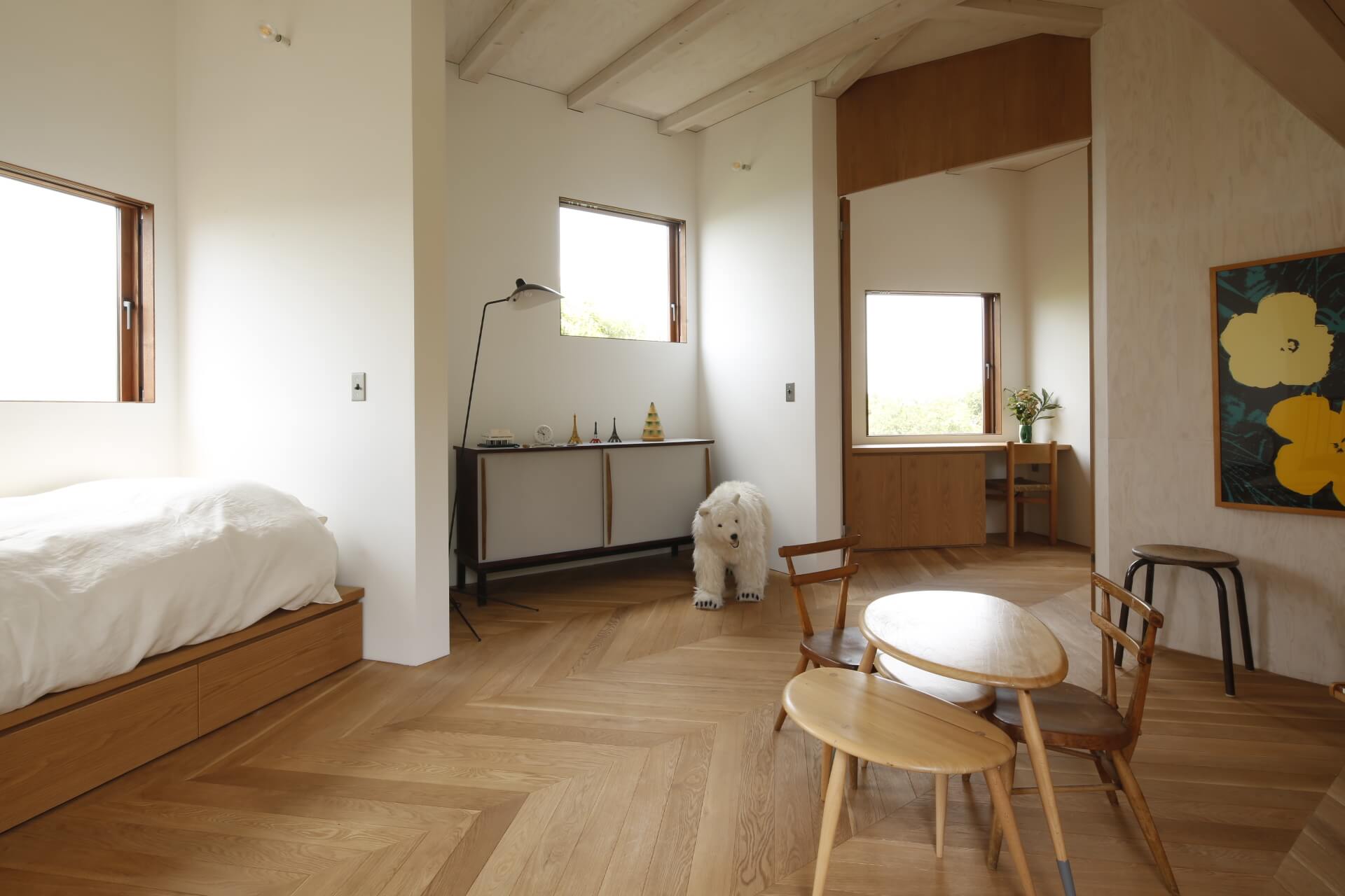 The house captures every ray of sunlight thanks to its woody tones, white walls, and light parquet flooring. There is also a tree-lined terrace to heighten the sensation of enjoying a privileged encounter with nature, right in the heart of the most populated metropolitan area in the world.