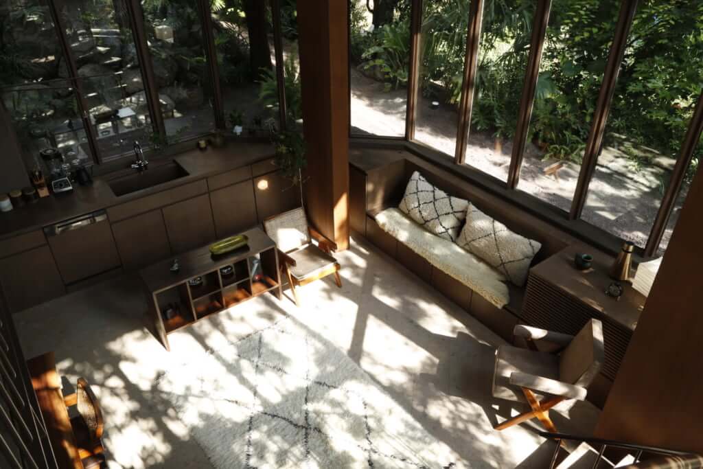The house captures every ray of sunlight thanks to its woody tones, white walls, and light parquet flooring. There is also a tree-lined terrace to heighten the sensation of enjoying a privileged encounter with nature, right in the heart of the most populated metropolitan area in the world.